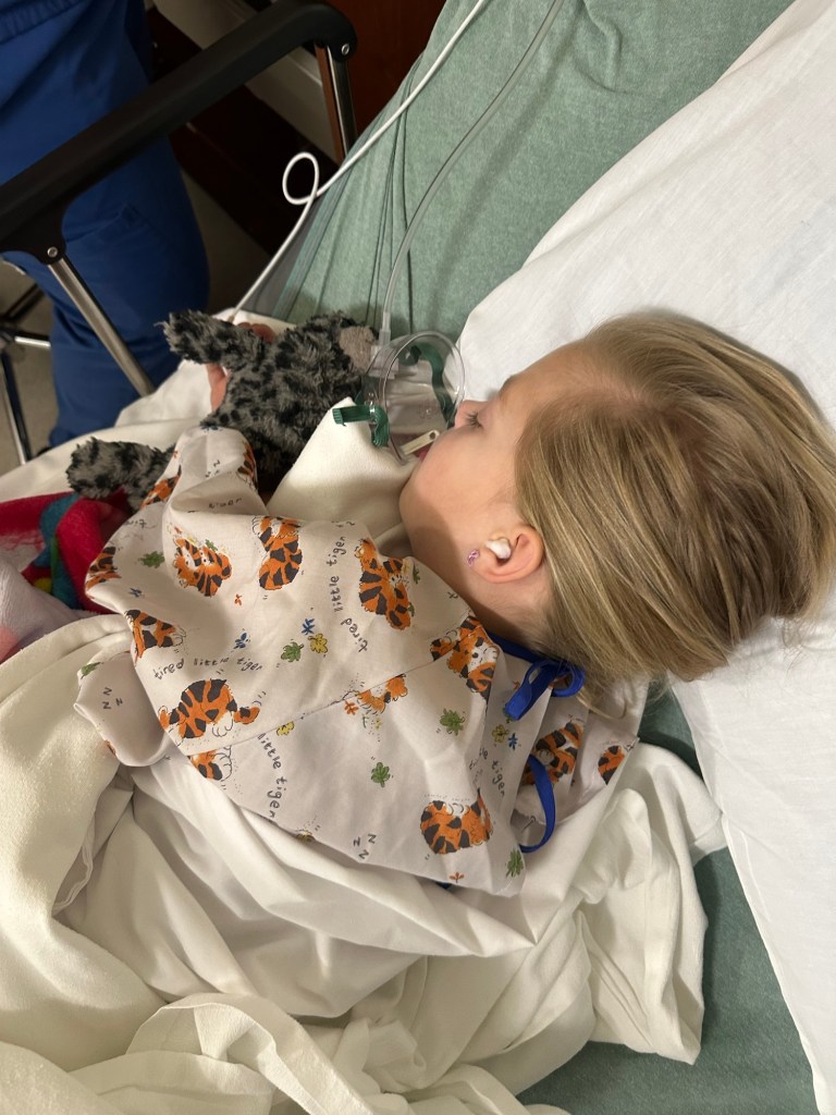 Today was a Harper day! After battling croup, ear infections and colds over the past few months, we finally scheduled her ear tube procedure, to stop the constant ear infections causing hearing issues. Harper was very excited for it all, unusually so since it’s a medical procedure, and likely because she finally gets her “day in the sun” and one in one time with the parents. After Emerie experiencing this a handful of times throughout the past five years; it is not lost on the other two kiddos that she received special treatment on those days. They seem to be unaware of all the other aspects that go with surgery, such as pain, coming out of anesthesia, naps to sleep a procedure off, and all the dreaded eye and ear drops. But you know, other than that it’s all fun and donuts right?
