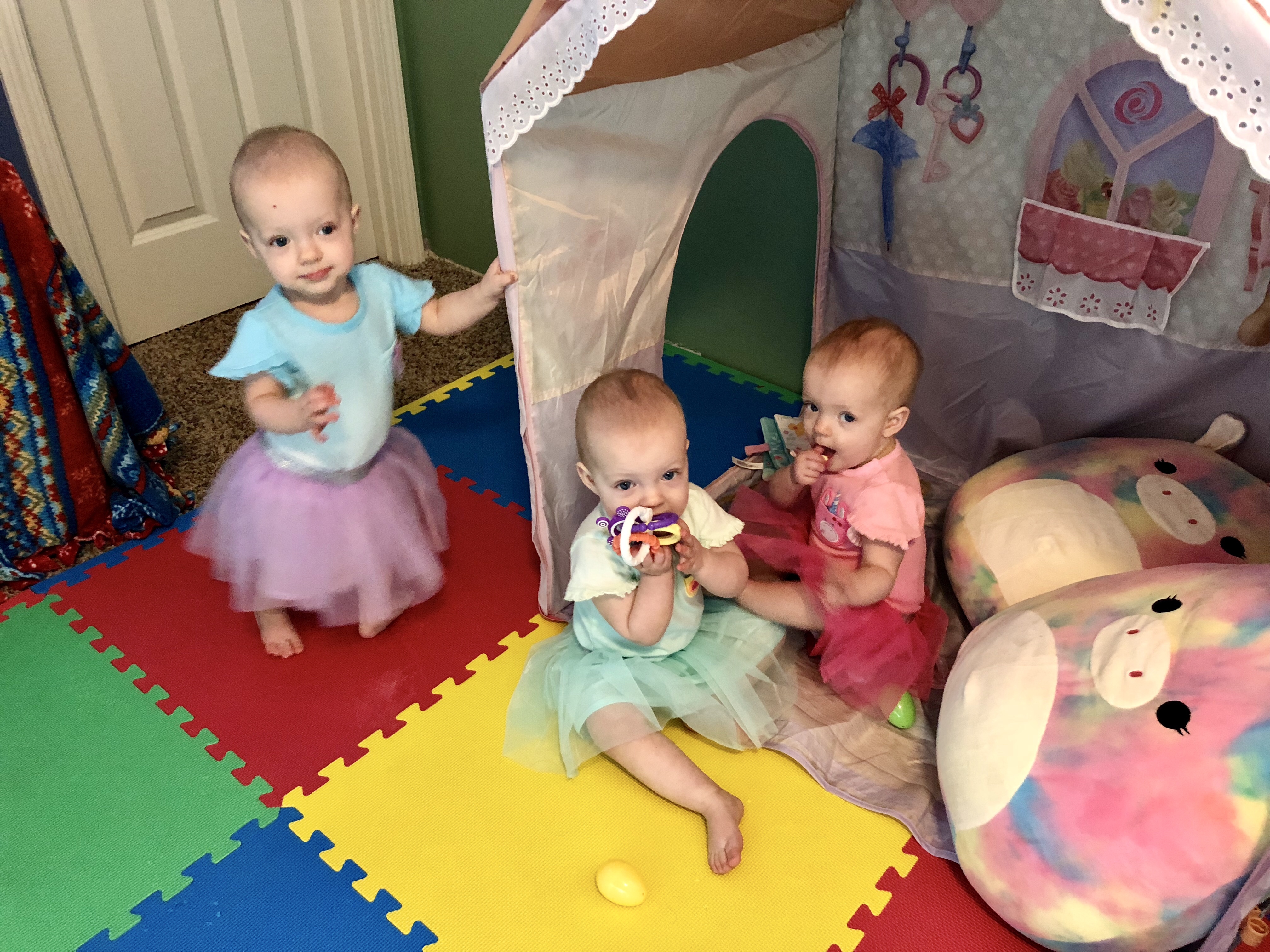 The egg hunt itself went pretty quickly and with great excitement like past years. They started out sharing the pink, purple, and blues with the kid specific to that color until realizing they don’t have to share. Very kind on their part, and some of the fancier ones were still traded even after my protests- no complaints here. The few eggs on the bird feeder were met with laughs and once knocked over, landed in Reagan’s hood. Seeing opportunity, Emerie snagged one and ran. Sisters…