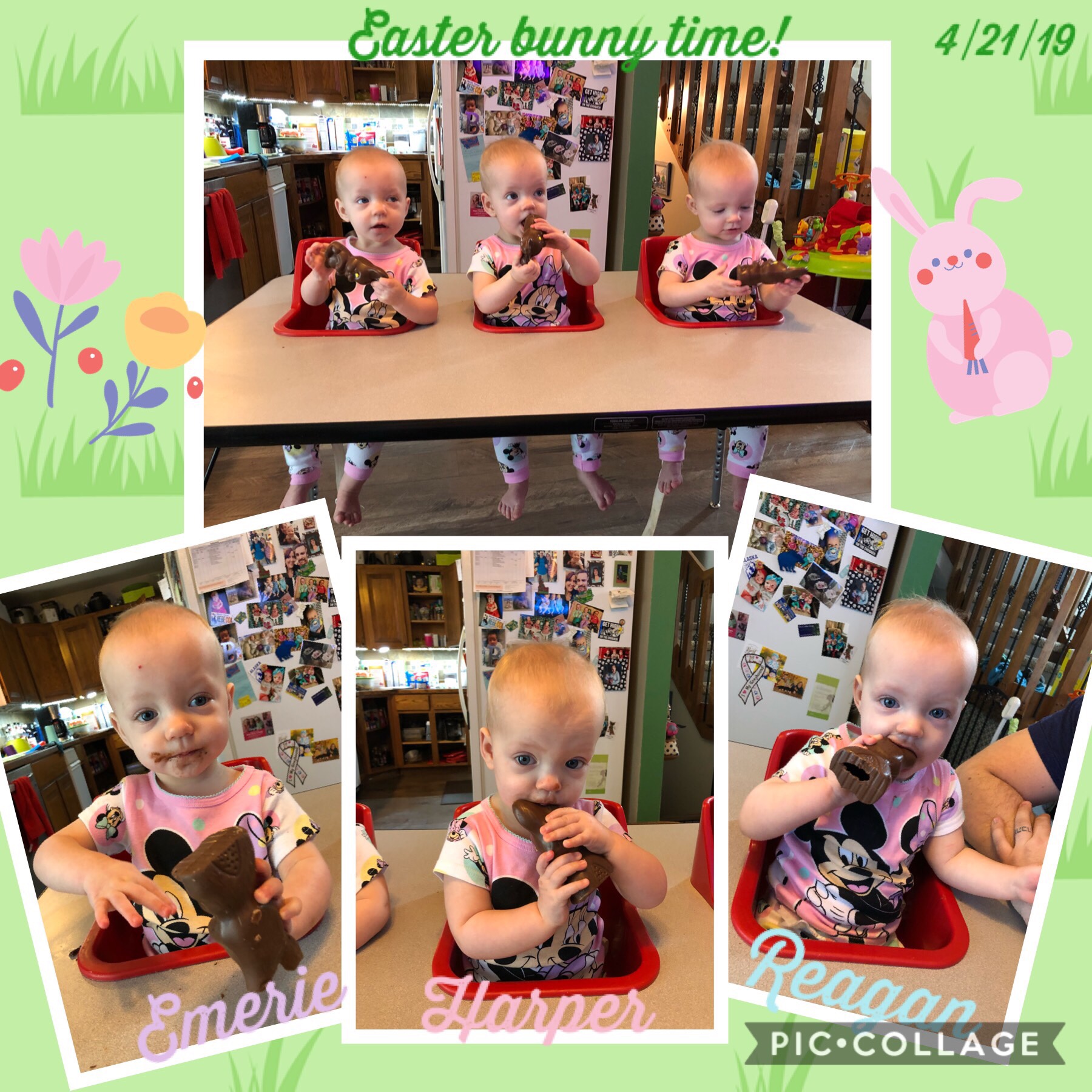 Harper drew a custom letter for the bunny visit and hung it on her bed, as visible as possible for easy spotting. I enjoy seeing what ideas they write on the love notes, and the cute freehand pictures along with it. Emerie also spent some time on a note, but declared the bunny would find it where ever she left it. That sneaky bunny left one egg by each kiddo’s bedside… but Reagan intercepted Harper’s and stashed it under her own pillow, much to Harper’s dramatic dismay she was left out. Meanwhile, Emerie was the first one up and displeased she didn’t get an egg and Reagan had TWO. The irony? Emerie could have easily slipped on her own egg down her stairs and still didn’t even notice it. Yep.