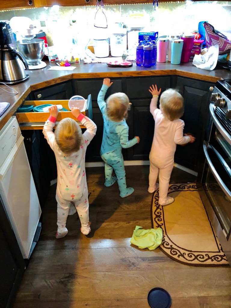 At two, the girls constantly call to each other and it’s very cute to see. Emerie is the chattiest and consistently talks to Harpa and Ray-gi; Harper says Emmi and Ray Ray; and Reagan says Harpa and Emmi. Emerie also calls herself Emmi (emphasis on the “i”) when she explains something happening to her. The girls also say Momma (me), Daddy (Craig), Papa (Lon and Cliff), Nanny (Chris), and we are still working on Grandma…and not to be forgotten…Koda and Kalli (dogs) are consistently spoken to and about. They are not on a first name basis with the cats yet.