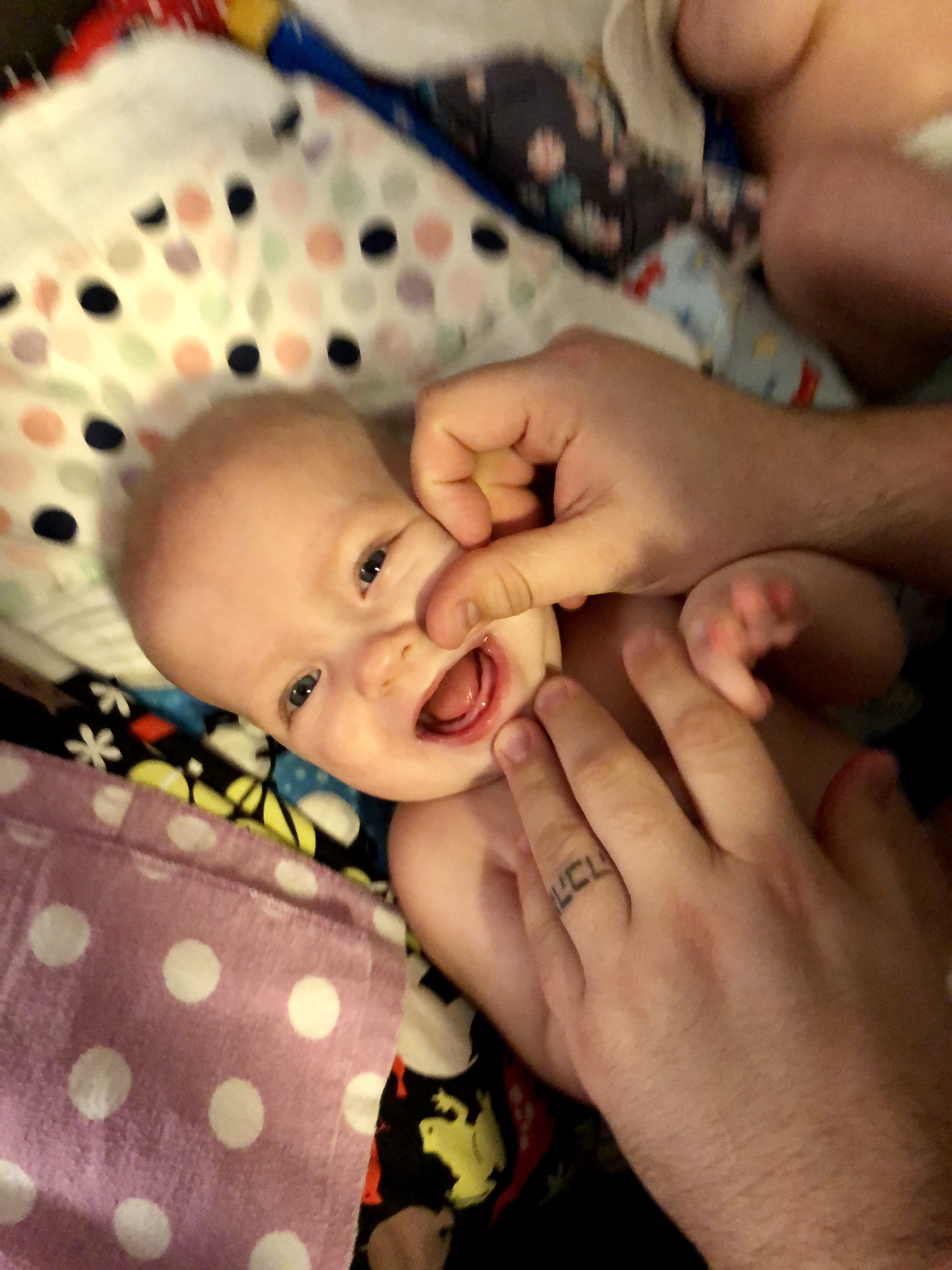 We attempted to get photos of their little mouths, but they did not agree to it and don’t hold still! Still don’t have one of Emerie!