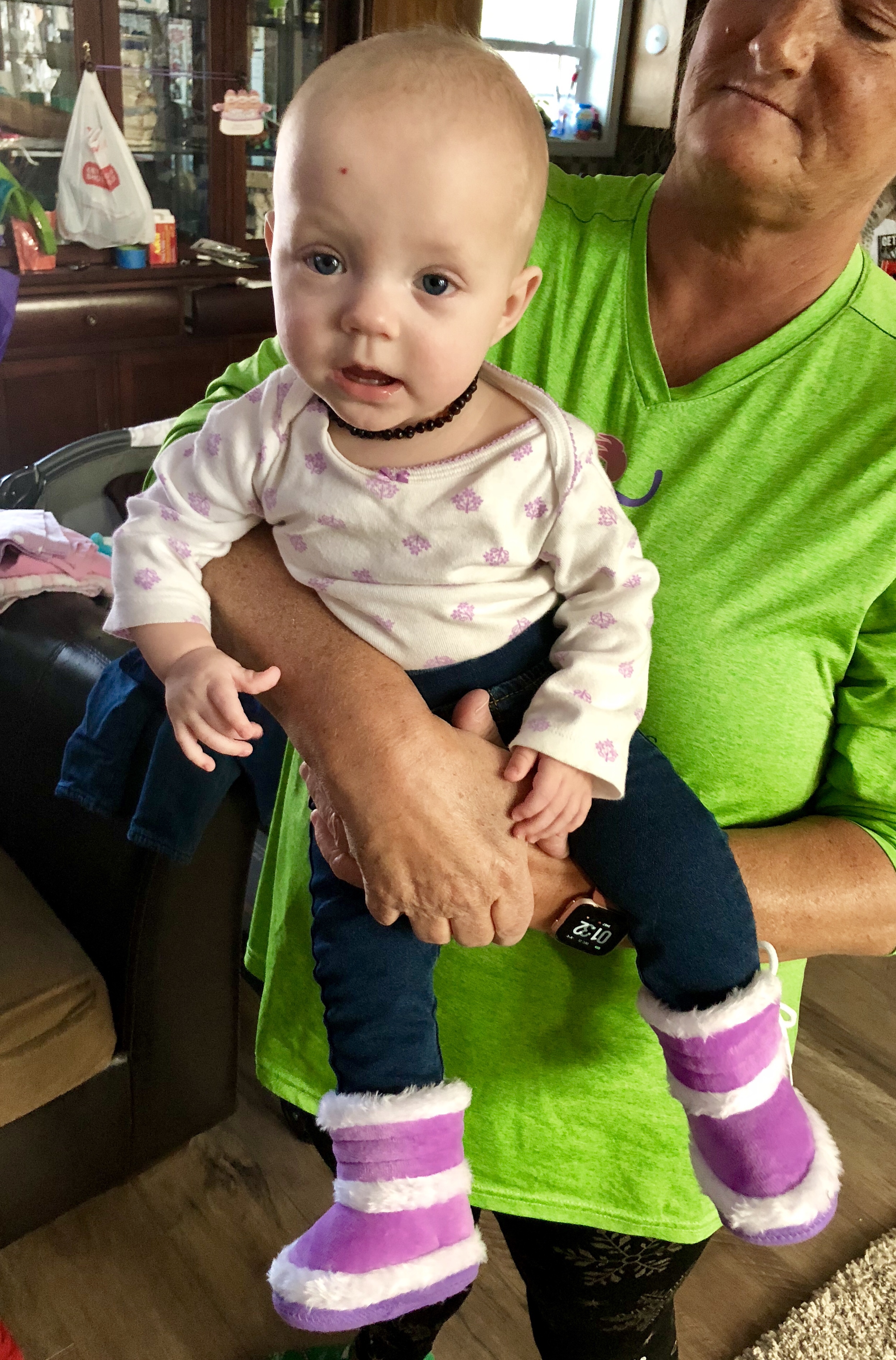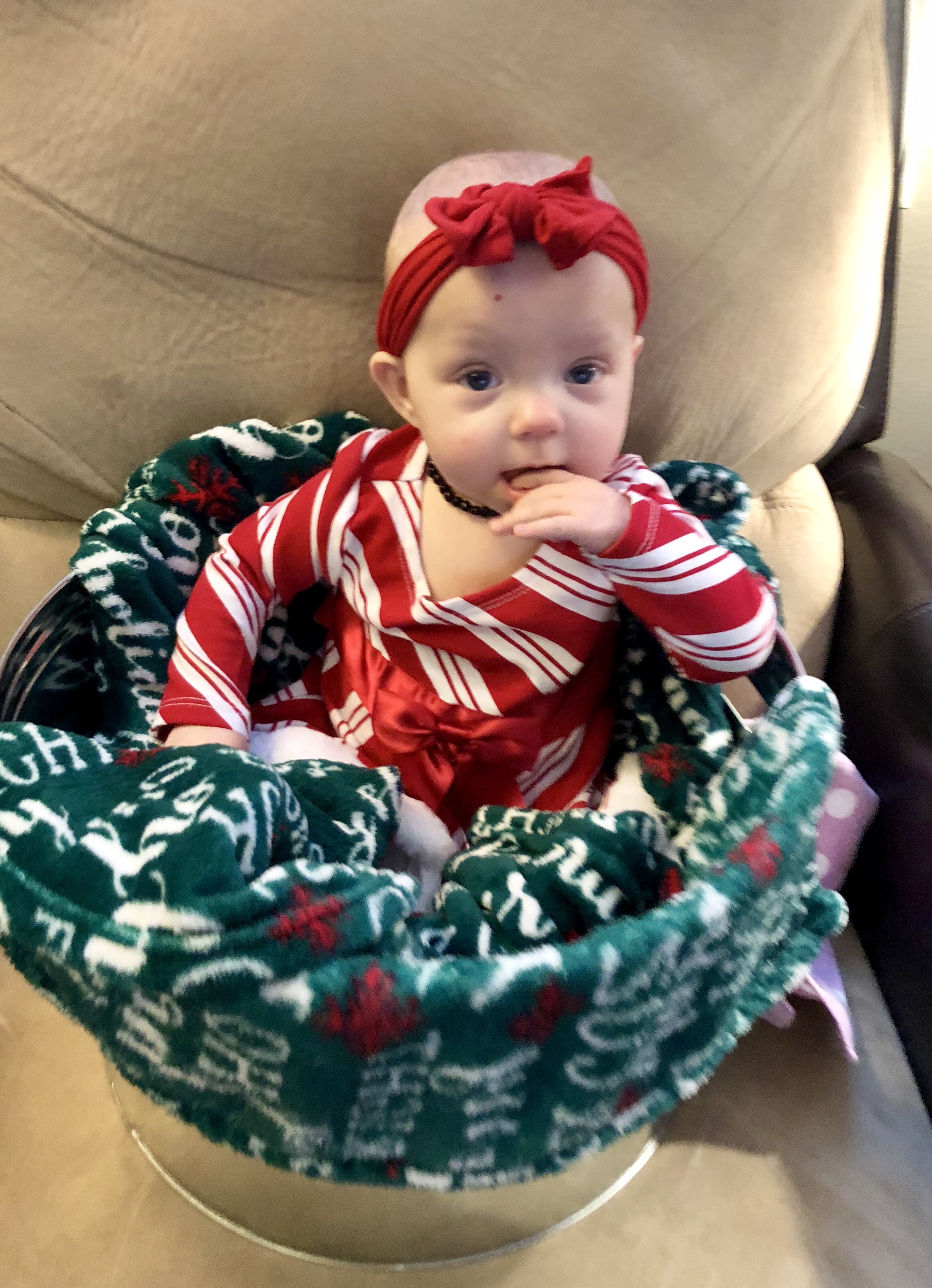 Dislikes: She is not the biggest fan of baby food most days and generally prefers her bottle. She is also not a fan of teething or tummy time…other than that, she is still our chillest baby most of the time. Like her Grandma Anne, she also seems to run a little cooler than her sisters and often has cold hands and feet.