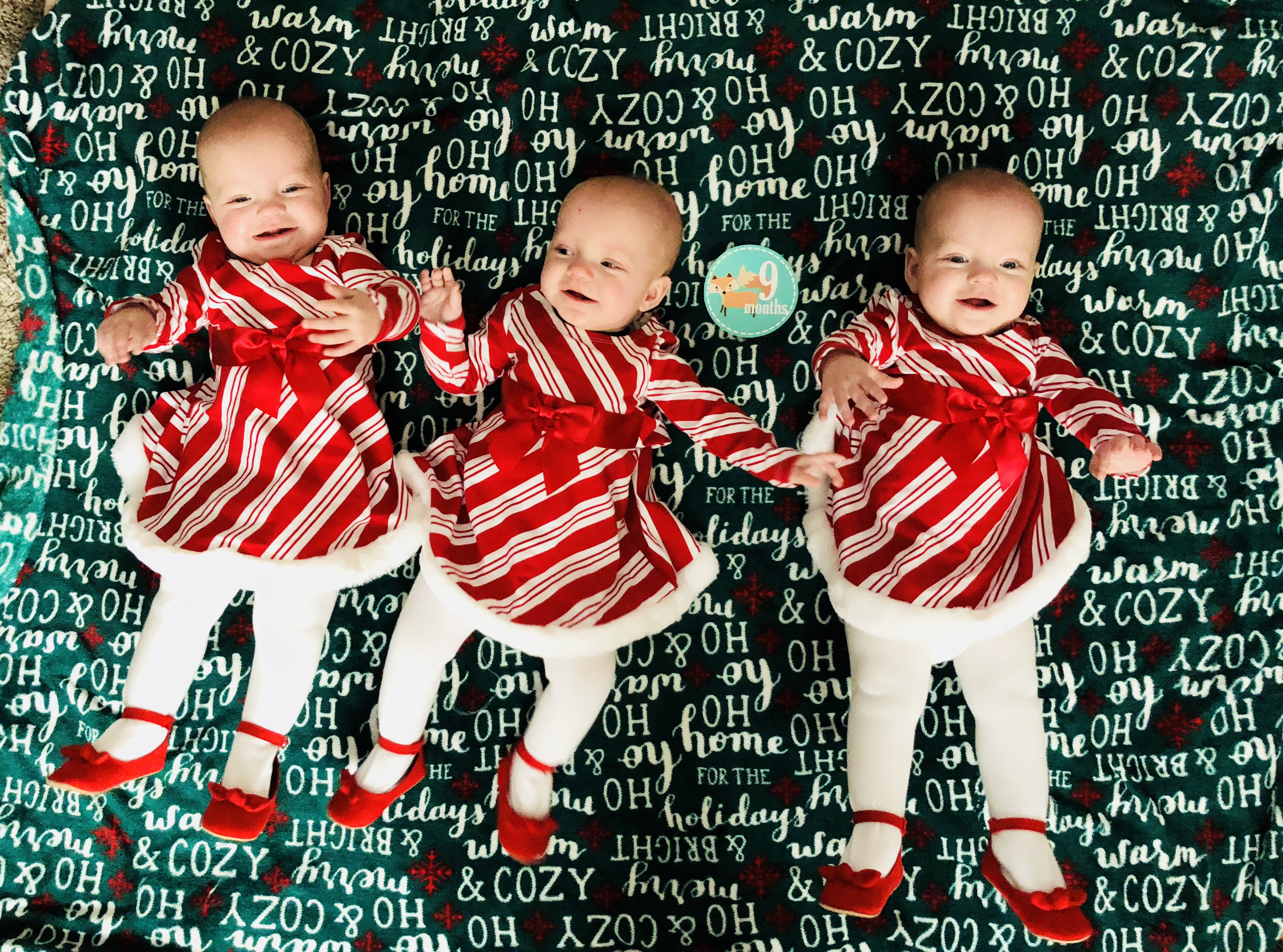 But in addition to the hardships, we’ve also had great developmental improvement, Santa visits, family visits, hair growth (yay!), and generally happy, healthy babies.