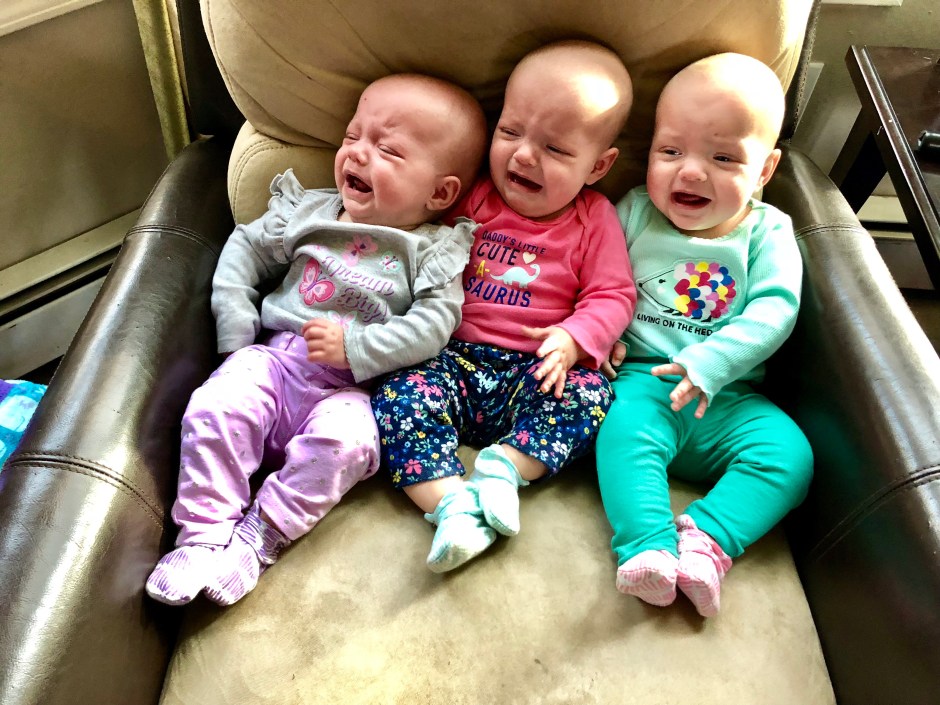 As I start writing this, Reagan is sweetly looking at me from her swing while her sisters obediently nap up in their cribs.