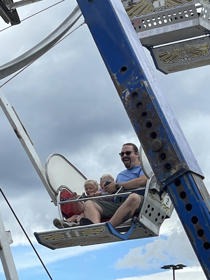 The following weekend resulted in a couple park visits in between rain and some time spent on the Saturday Market rides. The girls all rode with Craig on the big ferris wheel (not my favorite thing to ride-aka heights), and while Reagan was the most nervous of the three, all shared big smiles as they went around. Emerie ended up yelling from the ground that she could see Craig’s leg tattoo when they were at the top, which she thought was exciting. Everyone enjoyed several carousel rides with Grandma Anne in tow and sucked down some shaved ice and lemonade. It will be fun to see how they do with the fair rides next month…I’m betting we will have to pry them off by the end of the day.