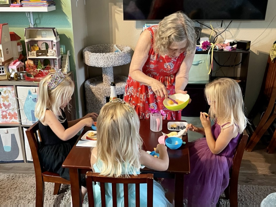 One afternoon at preschool pickup, I told the girls I wasn’t feeling well (air pressure change headache). On the drive home, all three informed me that I needed to drink more water, I needed a blanket on while I sit on the couch when we get home; then that I need to make them dinner and eat it. After that, I was told I’d feel better if I went to sleep in my bed and didn’t work the next day. Very specific, but well thought out steps from my four-year-old clan!