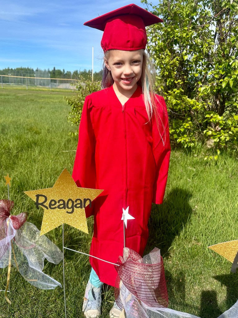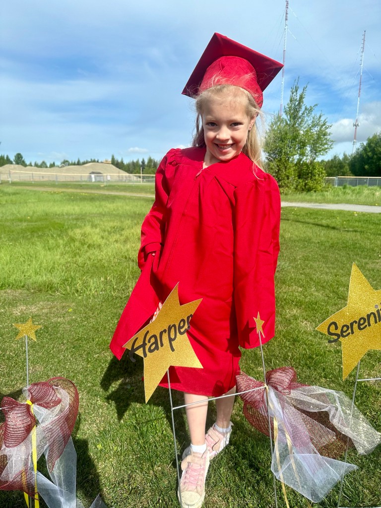 As for my little graduates, I couldn’t be more proud of how much they’ve grown and thrived during their first year of elementary school. I genuinely love that we know the teachers, the school and where they spend their days…because the world is a scary place! This milestone is a testament to their hard work, curiosity, and resilience. Each of them has learned so much and shown remarkable progress in their own unique ways. From mastering the basics of reading and writing to developing a keen interest in science and art, their journey is nothing short of inspiring. They’ve made new friends, discovered new passions, and faced challenges with courage and determination. It’s incredible to see how they’ve adapted to the structured classroom life, embraced the excitement of learning, and found joy in their accomplishments. Here are a few specific achievements and areas where each truly shined: