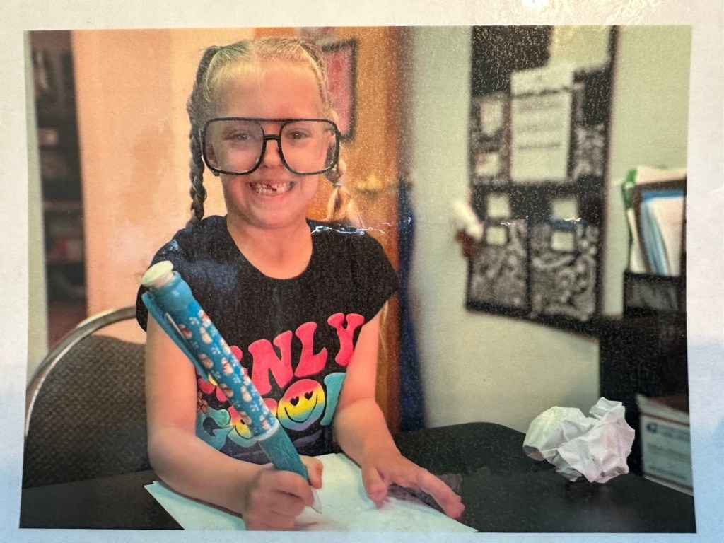 Harper recently started drawing and writing “lists” more than prior months, checking things off as they occur. I’m not entirely sure which school subject she is drawn to -it might be PE or dance related things- she also really likes to color and is getting pretty good at it. She sits and focuses on craft creations much longer than in the past, and thrived learning her dance routines this year. Harper is still working on a couple of her letter sounds and continues to try to figure out the answers when she doesn’t know them.