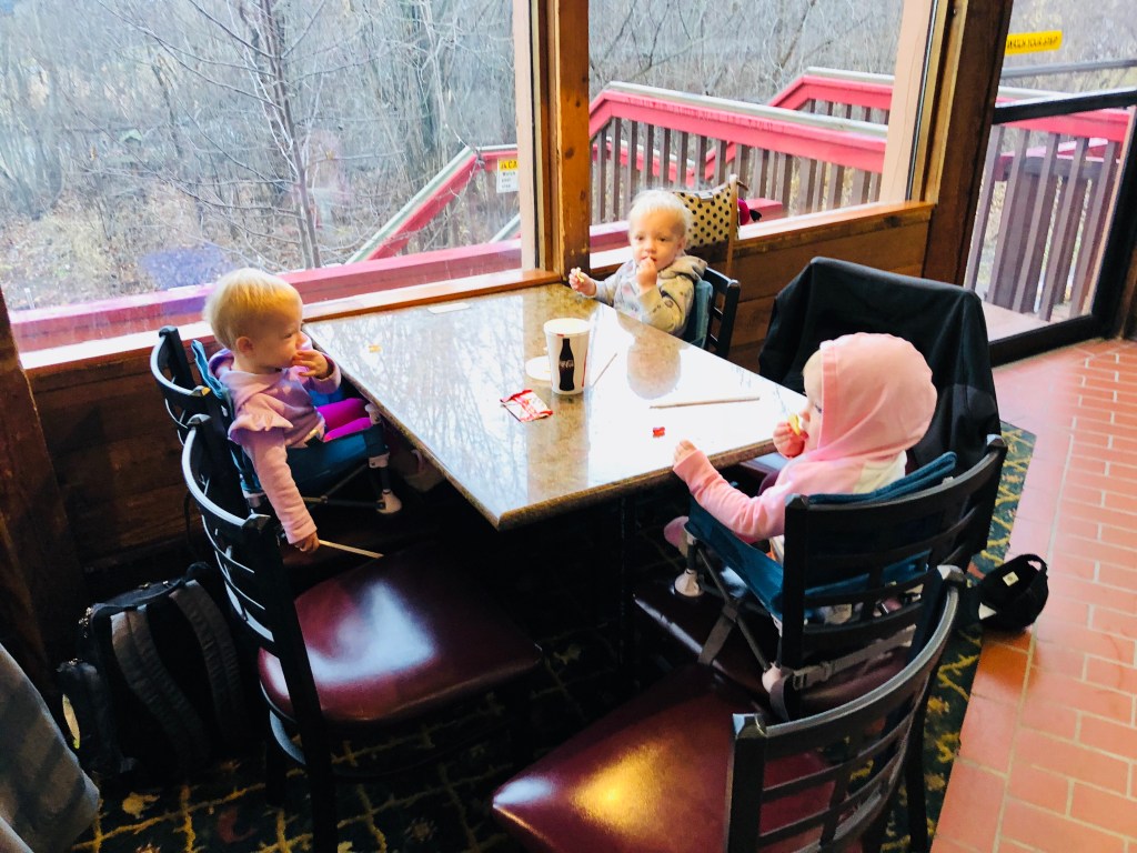 The girls did great out to lunch at one of our favorite local, family-owned restaurants- Arctic Roadrunner. I discovered their great love for delicious pickles and brought a pile home with us for snacking on later. They will suck all the juice off the pickle before attempting to eat it, so I think it passes the toddler flavor test. At the end of the meal, Emerie and Reagan were playing peekaboo under the table with each other, initiated completely by them! And as I handed the last baby to Grandpa to take to car, the table next to us sweetly commented that they have twins and thought the girls behaved great throughout our lunch.