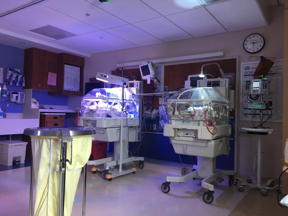 Craig headed off to the NICU with the babies as planned, and I was stitched up and moved into recovery. At this point my high blood pressure indicated eclampsia was an issue. My memory is a bit blurry here, but I do remember that I was arguing against a magnesium drip and on the line of getting it whether I wanted to or not. My blood pressure was checked every five minutes and took over an hour to come down. I didn’t get to see the girls until about 8 PM, partially due to shift change and partially due to my blood pressure issues.