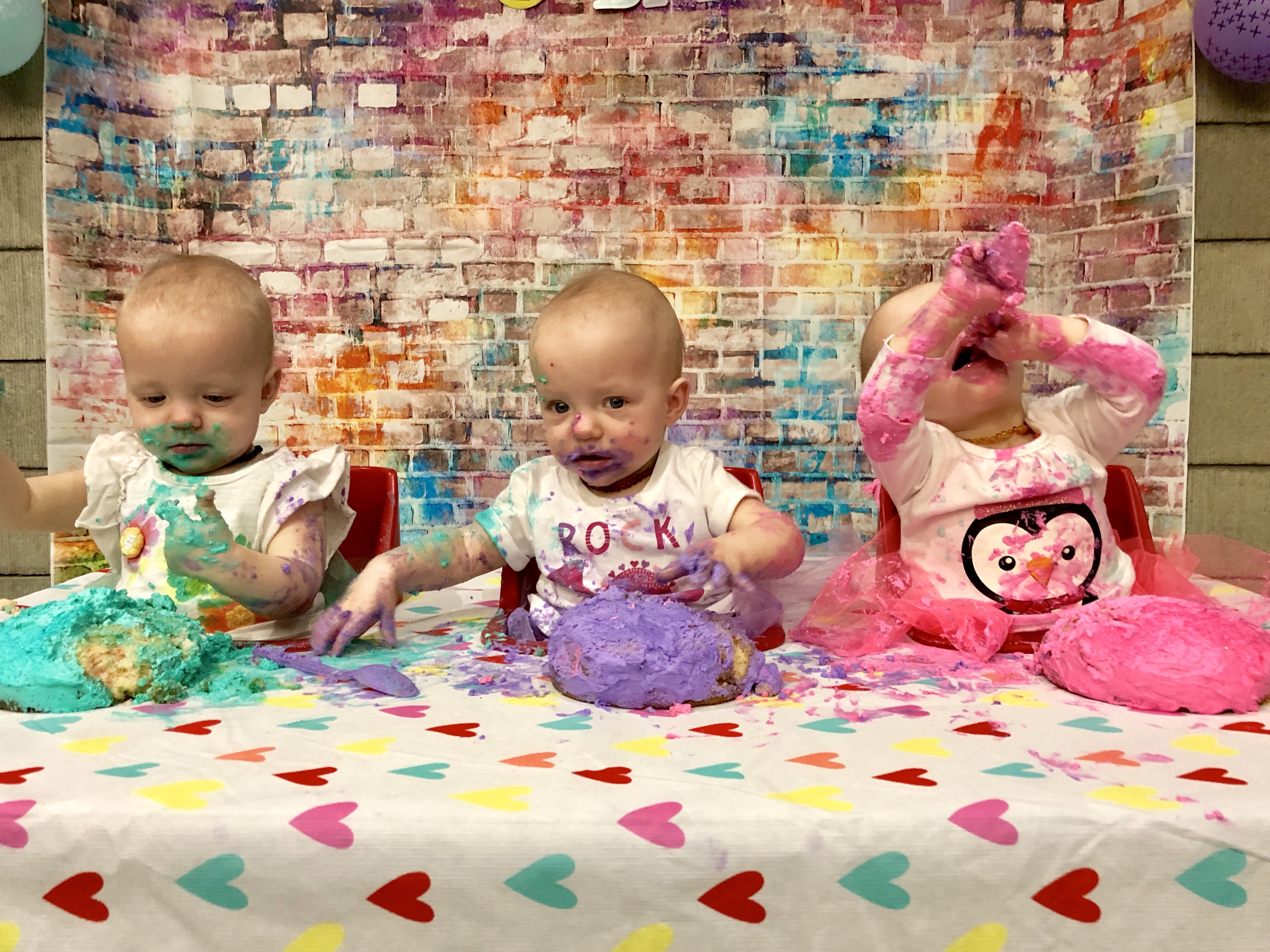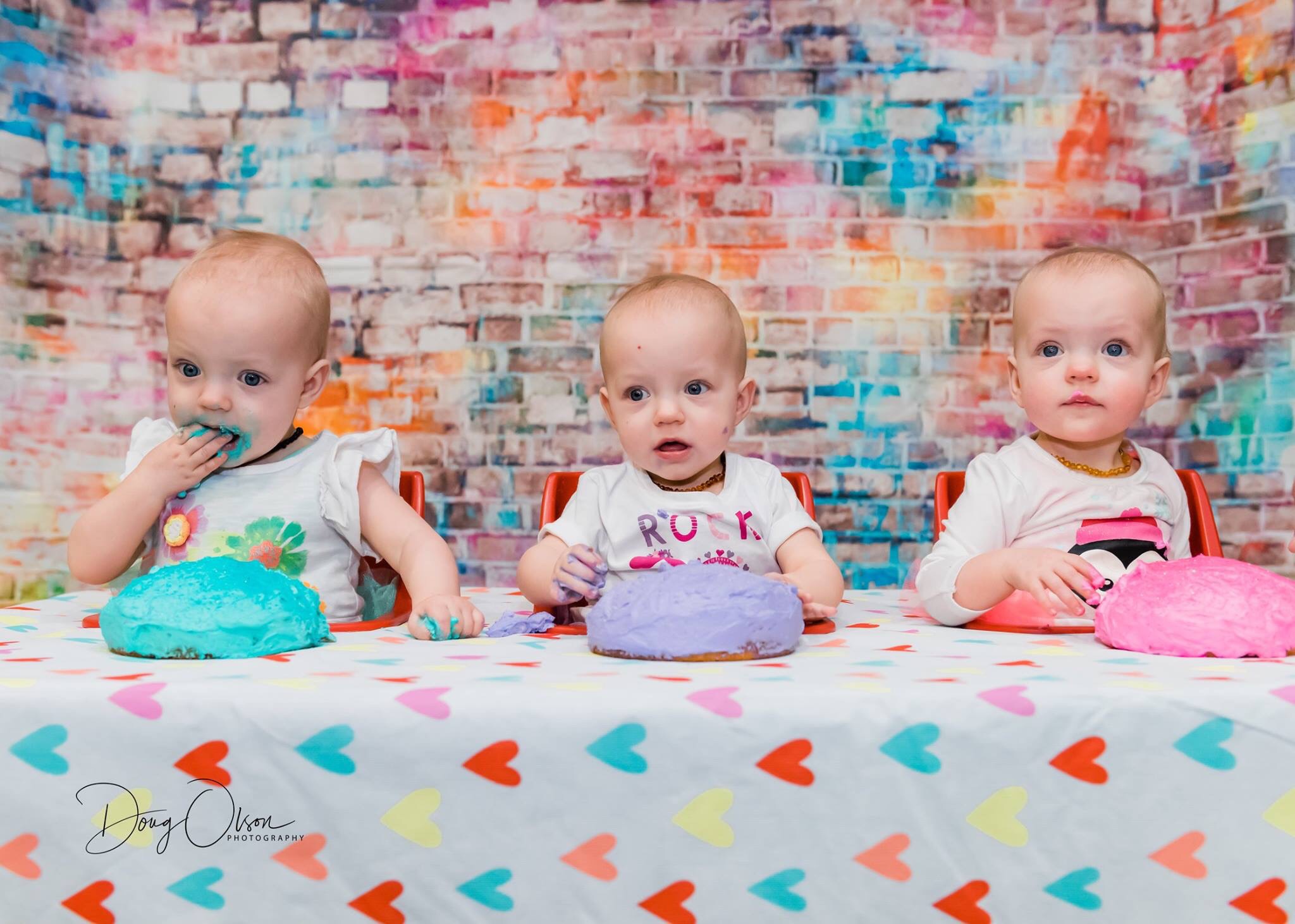The cake smash went as expected, with Harper a bit more apprehensive and Emerie and Reagan more enthusiastic. After a few minutes they got into it! Thank you to Doug Olson Photography for some fantastics pictures to memorialize the occasion!!