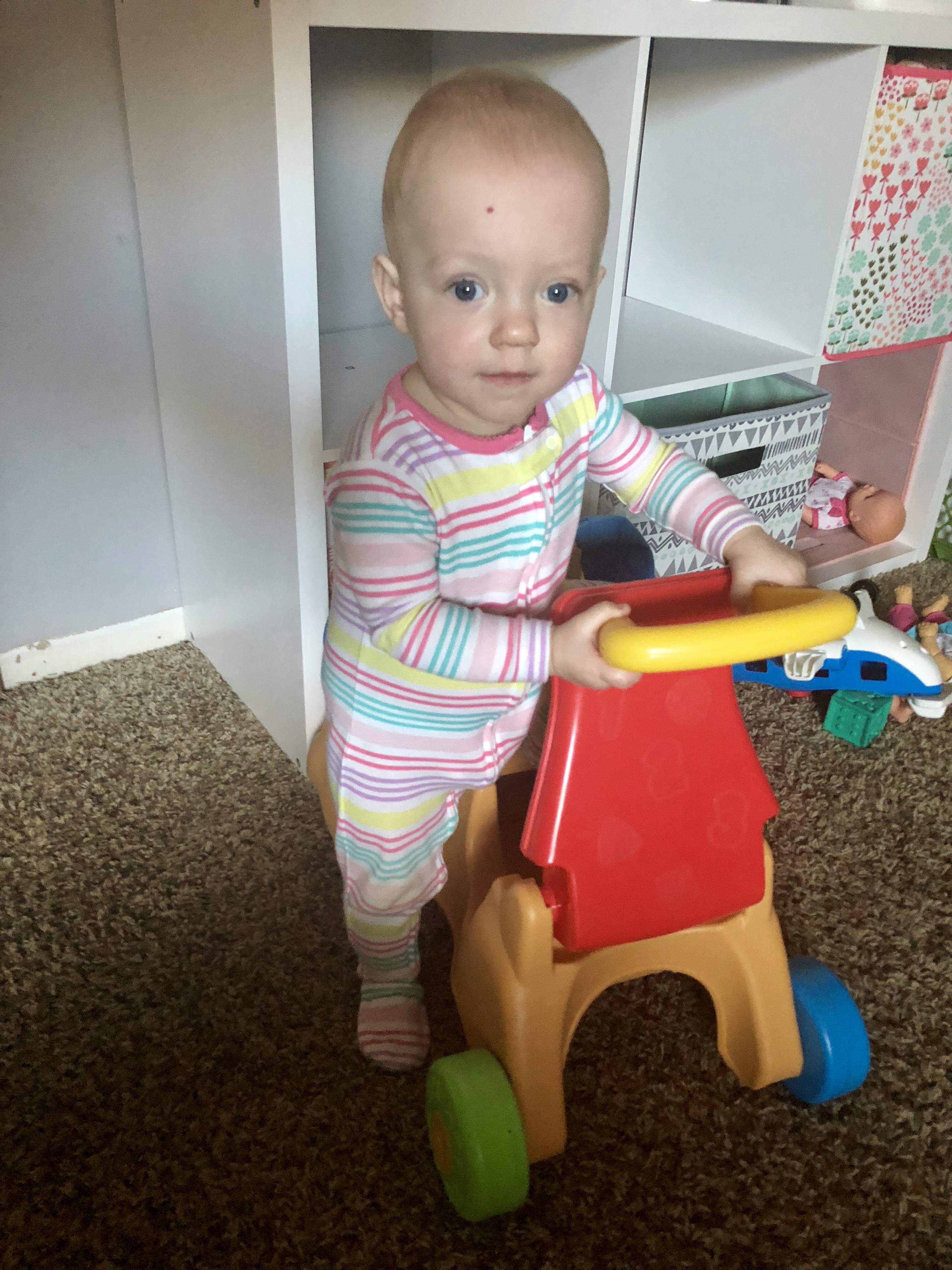 Funny how I wrote that sentence a couple days ago…since then Reagan has figured out how to open them. I find it incredible how quickly they pick up on new things or try to mimic something you do. I constantly see mini hide and seek games or turn around and one of them is wearing something on their head and peeking out at you.