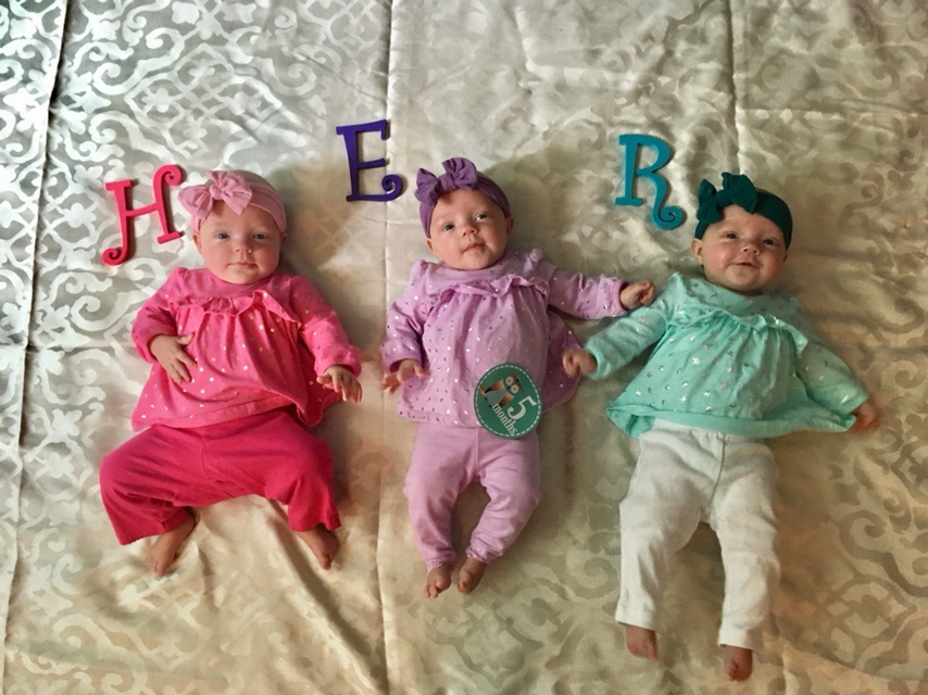 The girls may look the same to the eye, but they are all very different personality wise.  It is fun to see their traits and attributes come out on a day to day basis, and that reminds you they are three, separate individuals; three that just happen to come in the same package.