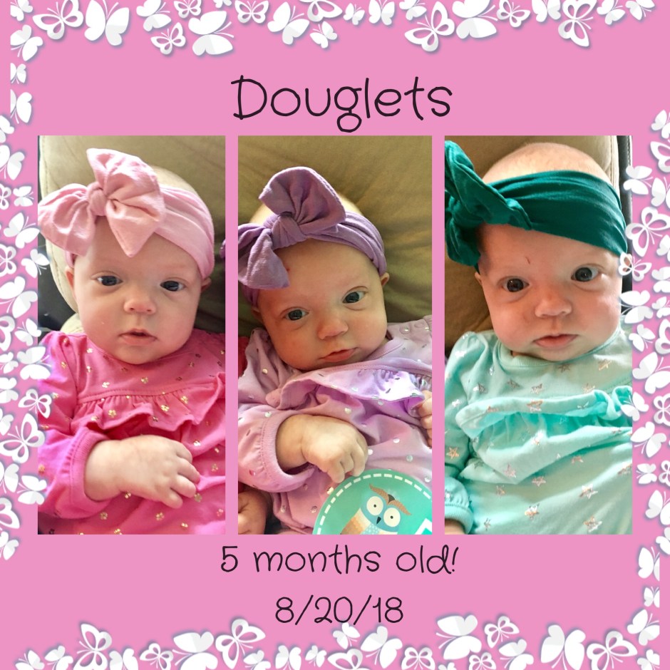 Well it’s true…somehow we are already at five months with the girls. I can hardly believe time has passed so quickly (mostly) and that we are almost to half a year since their birth!