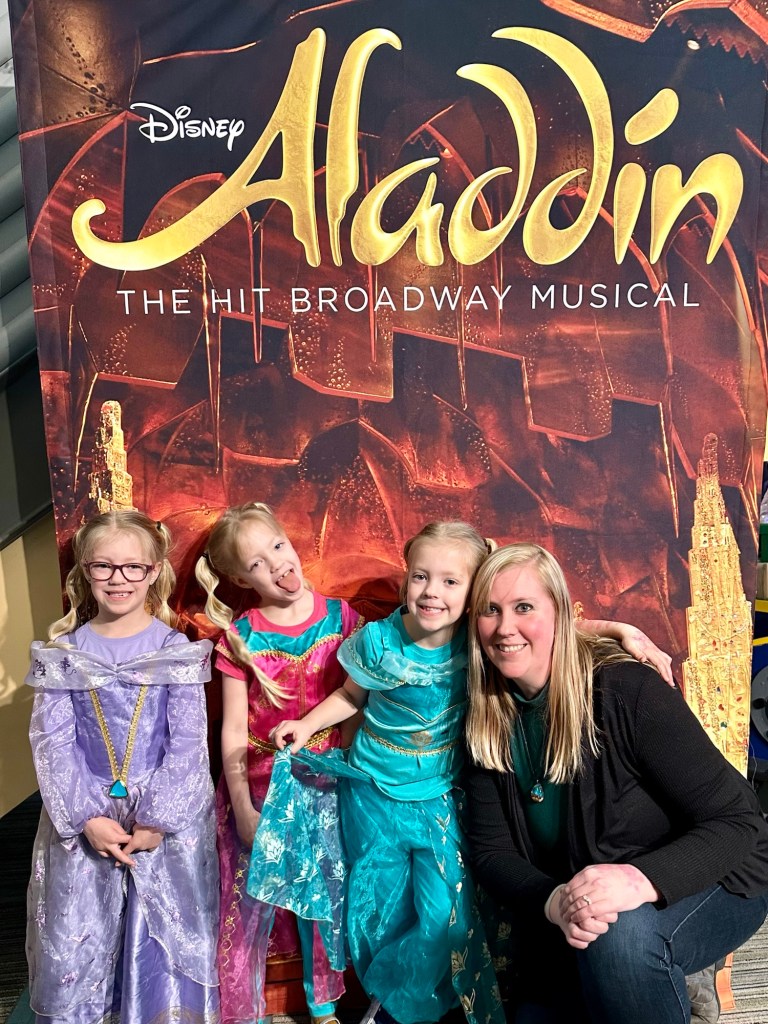 Attending another ballet school’s performance the weekend prior also amped up the excitement. The Alice in Wonderland theme was really fun and everyone dressed up for the occasion, including Papa Cliff! The girls kept saying I looked beautiful -just for wearing a skirt- and all wanted do pose for photos and wear crowns. Craig went all out and did temporary hair color for each kiddo and everyone was ready for an evening downtown.