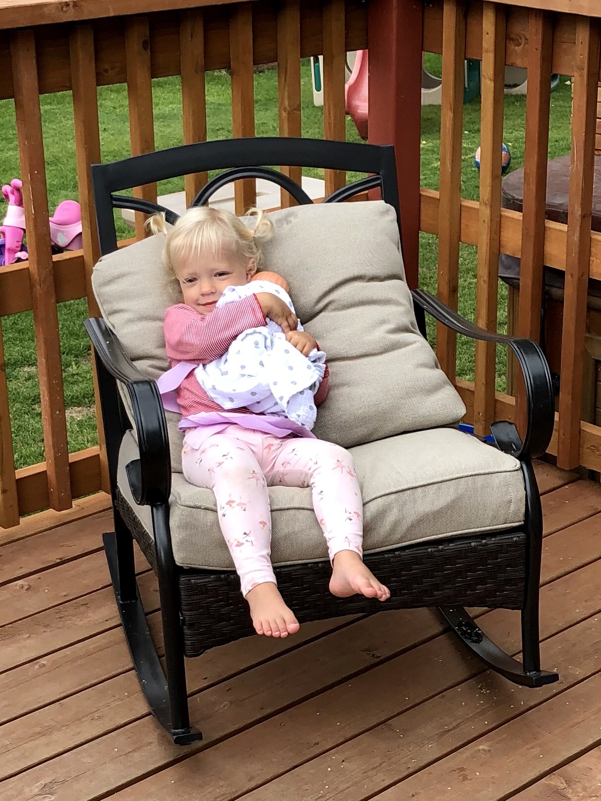 Harper is still on her anxiety streak, freaking out in her crib when she wakes up and wanting to be close to Mom and Dad. About half of every night involves me sleeping next to her in the guestroom, with Craig settling Reagan if she is disturbed by her sister and Emerie sleeping through like a pro. She’s still waking up early but does so much better when Craig is working downstairs; not sure why but she will sleep past eight when he’s home! She is also talking up a storm and adding new verbs every day.