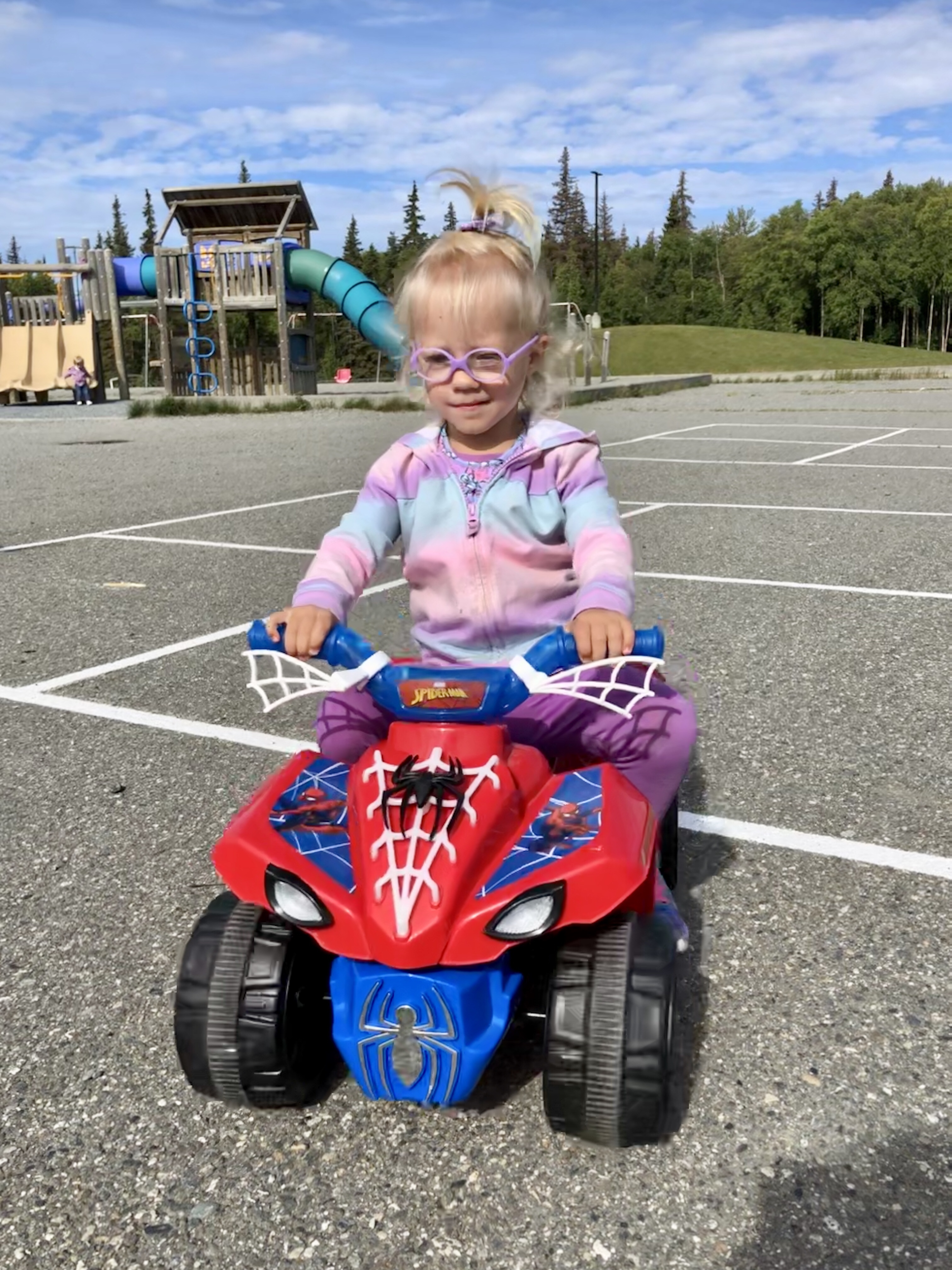 She is still ready to take the world on 100% of the time, is often the instigator for trouble making and encourages her sisters to join her, and is practically talking a mile a minute. She enjoys movies the most of the three and will sit and snuggle for 30+ minutes and watch one before bed time.