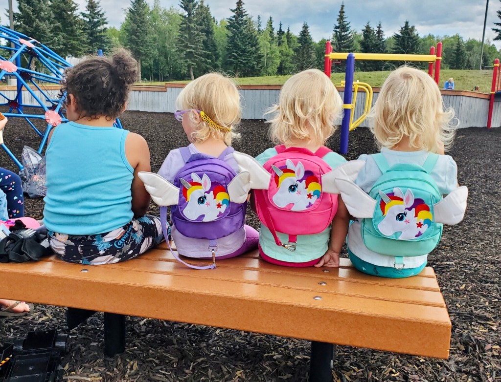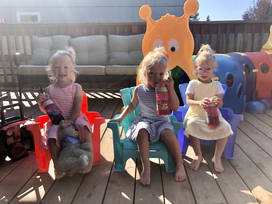 Another bigger change at daycare involves splitting them up. They don’t put three new toddlers together, regardless of sibling status, so we opted for Harper and Reagan to stay together and Emerie to be on her own. No, it’s not because the two team up against their smaller sister more often; it is because Emerie is great at independent play and likes to take the time to figure things out. We are hoping she will thrive from this. They will still be together for breakfast and recess each day, but not for some activities and nap time. I’m hoping once everyone settles in they can go back together, unless Emerie absolutely loves being on her own.
