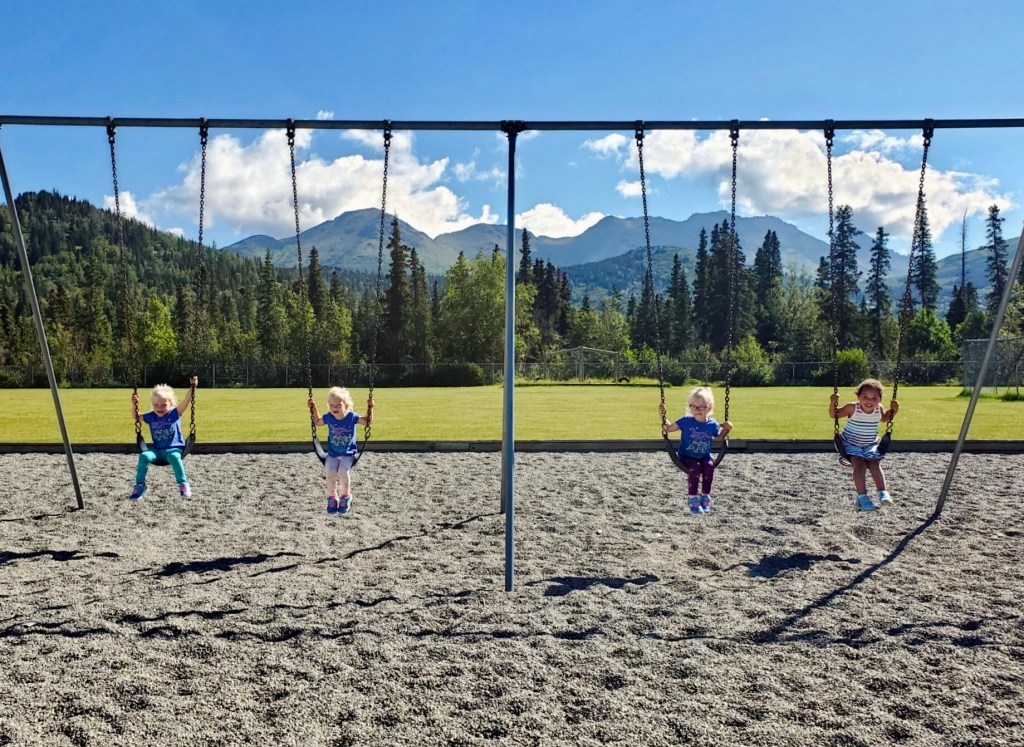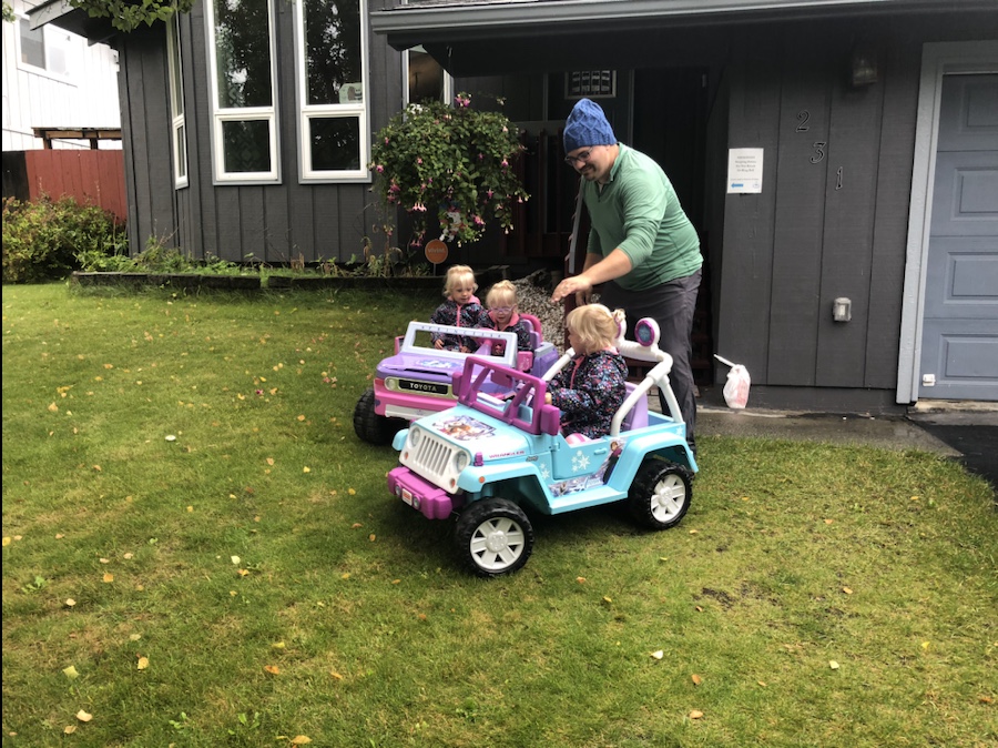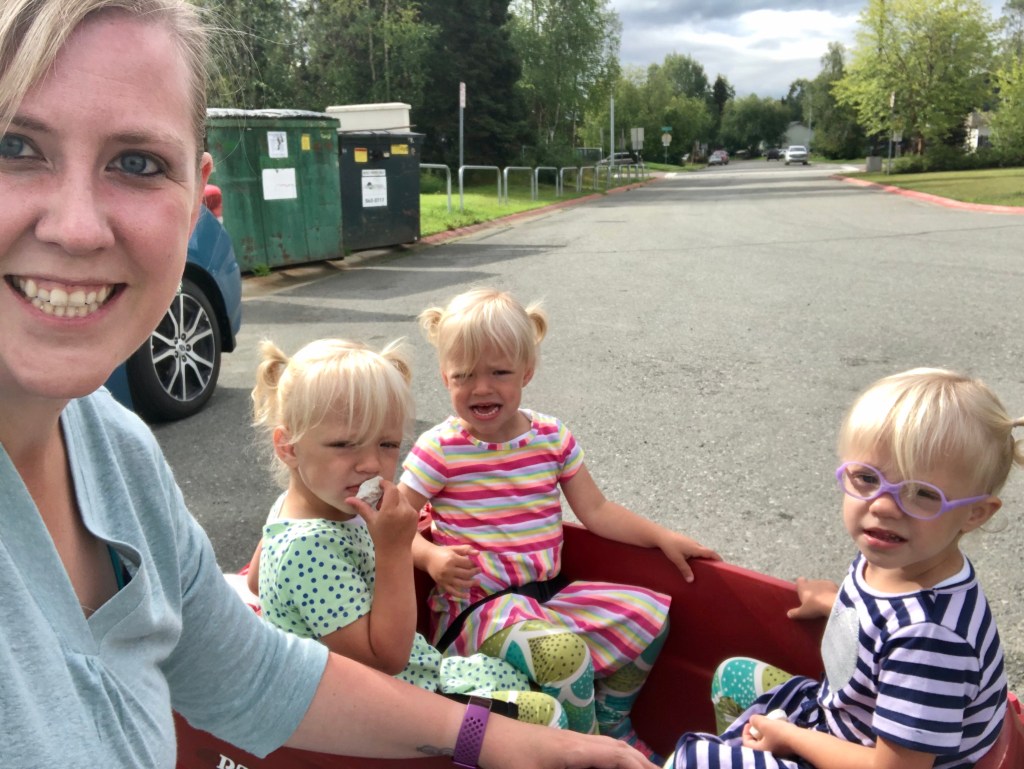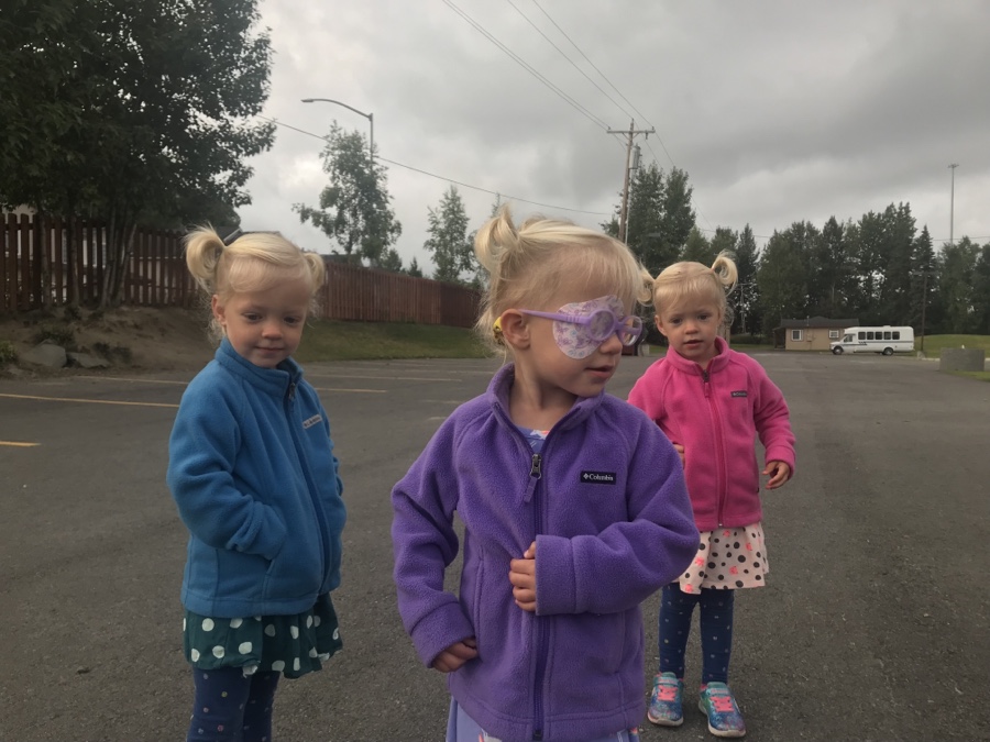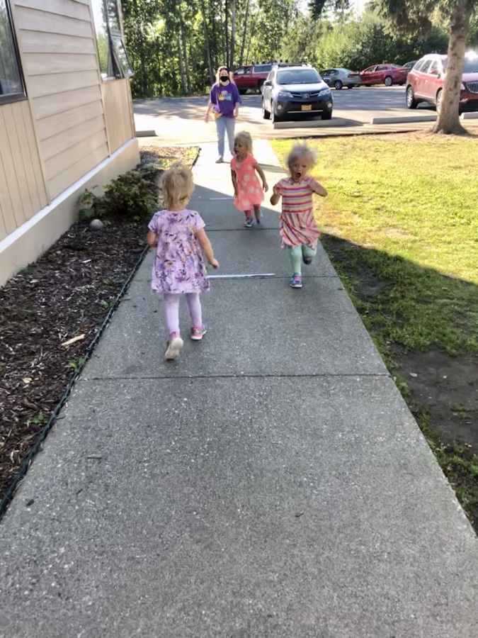 Right now no one is a fan of wearing pants, or their diapers if given the opportunity to remove them, and everyone is obsessed with the potty. The current favorite color is “yellowblue”. No, that is not green; it is yellow-blue. As true Alaskan babies, they are now okay playing in hose water or the sprinkle out back, even with the multiple cold! comments.