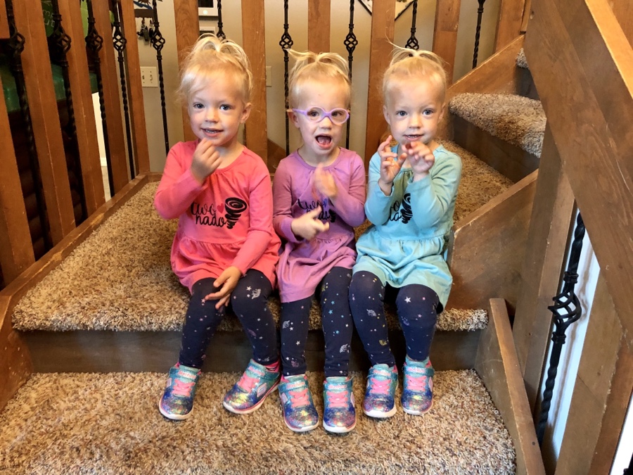 The baby timeout chair, aka the high chair we used in addition to the triple table, is now retired to the garage for resale. We are continuing to implement time-outs and this is not so simply with three at once. Surprisingly, they will mostly stay in the corner you put them in for punishment, and half the time it is Harper. The next door neighbor asked us the other day which one is always in trouble, is it Harper? I find it hilarious they pick up on that from our day-to-day, because she is definitely the one in the hair pulling, biting stage. Emerie’s biting habits are letting up now and in general Reagan responds to verbal discipline far more than her siblings do. It is interesting to see how they all respond differently to punishment, as I predicted they would (just because that is harder!). They also asked us who is the one that seems more upset than the other two…which Craig and I both responded with Reagan! She is currently living her best two-year-old life, which means acting typical for her age according to the nanny, while the other two are on better behavior (I guess?).