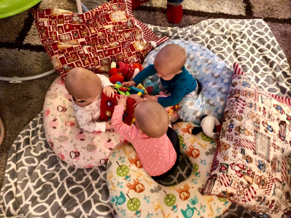 The girls are advancing and growing quickly and have changed a lot since their six month checkup. Harper and Reagan weighed almost 14 pounds in September, and Emerie a little over 13.