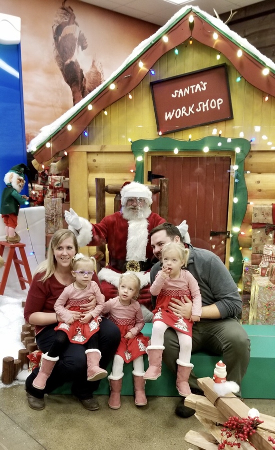 The girls all approached cautiously but without cowering, which is much more impressive than last year, which even had a anti-covid glass divider at the time. They talked to him and quietly answered his inquiries and questions. When asked for their names, Harper and Reagan were more silent while Emerie responded for all three. The funniest response was all three telling Santa that they don’t ever fight! Insert major eye roll here, since we ALL know that definitely isn’t the truth!