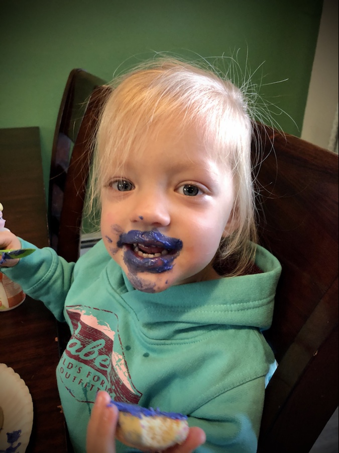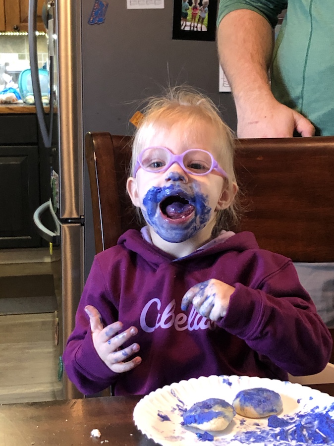 And yes, if you are wondering, I did not label their photos below wrong- Harper and Reagan are wearing opposite of the normal colors, but both Frozen themed! I was highly impressed how clean the end result was; I expected icing and sprinkles everywhere and it wasn’t too bad overall. Definitely acceptable!