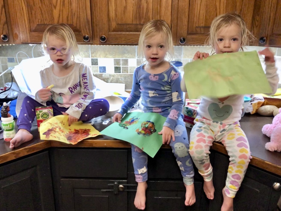 The girls were very chatty today about family members. All morning they asked about Auntie Manda and wanted to talk to her, so during lunchtime we did a quick FaceTime call and they were excited (so excited they all pooped- true story!). Later in the day Reagan asked a few times for cousin Tyler, saying she wanted to show her cheek owie to him. Emerie also said she missed Papa Cliff and the other two agreed. I’m glad that even though family isn’t local, the girls still have a close enough relationship to want to talk to them. Thank goodness for modern technology!