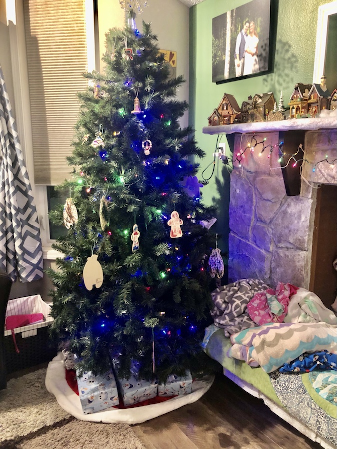 Ornament decorating is a very well liked activity this year. So much that I ordered a large set of random, pre-made ones so we can add them to the decor. The tree is mostly bare other than lights; partly because they love pulling their creations down and examining them and partly because it’s so much effort to unpack all the normal ornaments and put them up. Each kiddo’s ornament this year is a variation of Rapunzel from Tangled. The movie isn’t on replay as much as past months but certainly still a favorite. Everyone pauses to watch any song that pops up from the movie.
