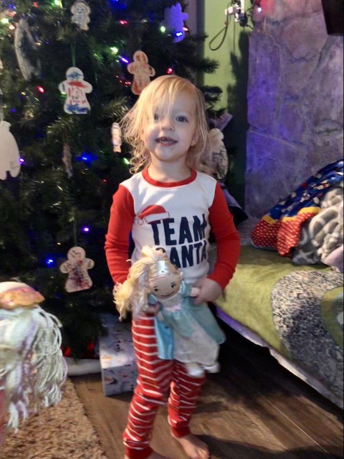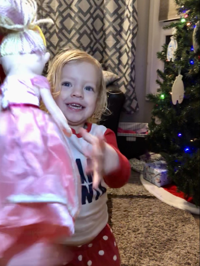 It took three days to open everything and we opted out of making a fancy Christmas dinner until the house is feeling better. It wasn’t a ton of gifts, but took so much energy and the girls wanted to play with their new treasures after opening each thing. Reagan had a few panda related things and a bazaar yeti I found, since she loves Abominable. Emerie opened a box of mini magnatiles, since she loves tiny things, a new, special holder for her glasses. Harper received several new outfits for her doll and pretty hair clips. Everyone opened a mini princess house with figurines inside (Pan’s tower, Aurora’s wooded house and Belle’s home) and traded around with each other. Aunt Jenny and Uncle Keegan sent a cool fairy house, horse stable and underwater mermaid “castle” that are providing some good entertainment and everyone likes the plastic, Frozen themed container from Papa Cliff. My mom made custom doll dresses for each kiddo during her visit that turned out really adorable! I’m unsure what the favorite presents are this year, since I never quite guess right, but I’d say the dress up clothes, Elsa braid pony tails and Grandma Sue’s princess heels top the list.