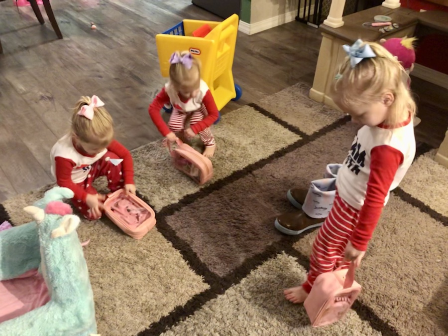 After spending more time at home, especially the past few weekends, the girls get more creative during free playtime and interact more than simply fighting. Christmas Eve everyone made a subconscious decision to behave so I could relax on the couch and spent the day playing hide and seek, with their Christmas Eve present we opened that morning (mini backpacks), and finding other ways to play with each other. It was wonderful (and didn’t last lol).