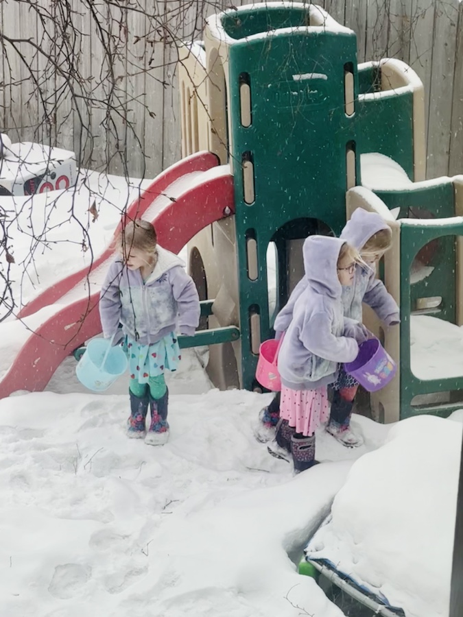 The naughtiness remains about the same, with Craig catching all three eating a whole box of apple sauce pouches in the garage one day. We continue to find ground up chalk all over the place too. The cozy pajamas, messy hair buns, dirty aprons, and generally relaxed atmosphere is nice; sometimes I prefer staying home and embracing the kid chaos, knowing in the future I will look back and miss these days. While I may not miss the high volume (or the fighting), I will definitely miss the activities, the coloring together, listening to them sing a song to themselves or focus while decorating cookies, and the requests to help cook.