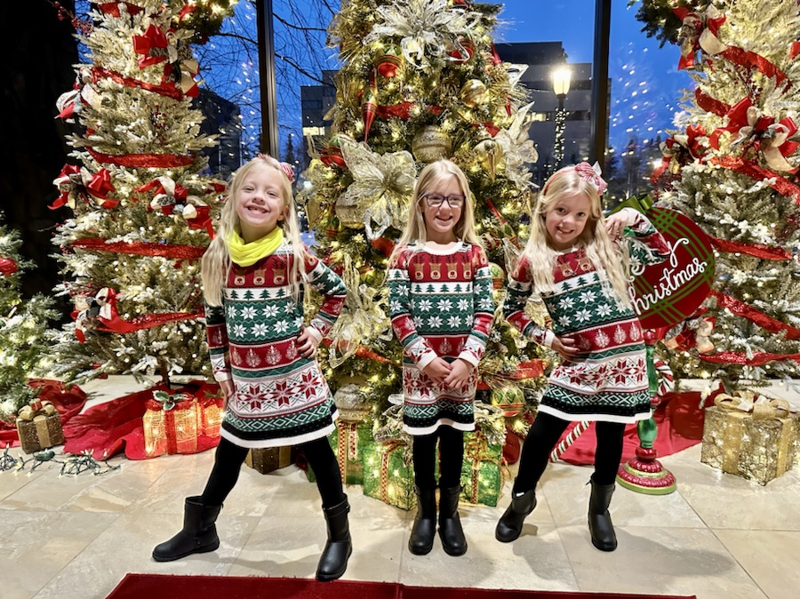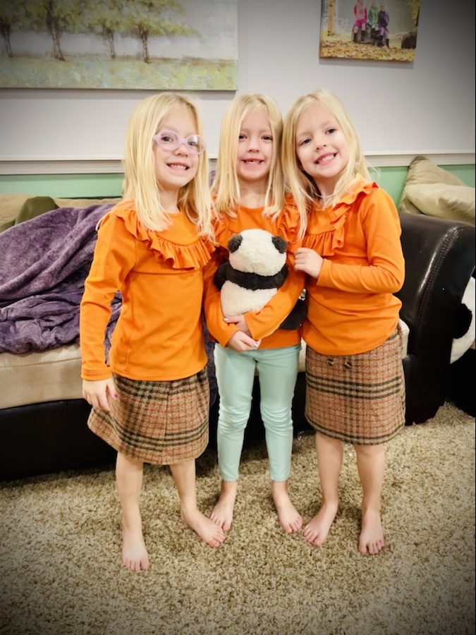 Our girls continue to grow like weeds and no longer boast those baby faces and toddler mannerisms. In addition to sailing through an entire clothing size this summer- our quickest yet- we also rearranged their bedroom this month and removed the sofa chair purchased during my pregnancy. This felt like a mental blow to my mom brain, reminding us how rapidly they grow up, and prepared for the oversized beanbag chair arriving from Santa. That chair holds so many memories; used multiple times a day, every single day, for years: triple bottle feedings every three hours around the clock, quick diaper changes, comforting a crying baby in the middle of the night, calming wild toddlers at bedtime, snuggling for naps after Emerie’s many eye surgeries, or reading a gazillion books. I often found Emerie sitting on it with a stuffy, listening to a Tonie story, or Reagan singing along to one under a blanket. I couldn’t bring myself to rehome it, so its new home is downstairs in the family room, ready for more memories and cuddles to come. To this day, I truly believe it was the best purchase we made in preparation for the girls, and the most used piece of furniture those first few years. In other big kid news, the girls slept in the living room by the Christmas tree a couple different nights, which is another age milestone and something I greatly enjoyed and remember doing as a 90s kid.