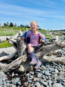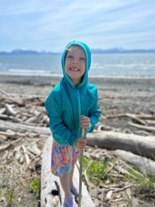 The second half of the trip was spent in one of our favorite spots, Homer. We only spent about six hours in the town last year and I have been looking forward to a longer visit to spend more time exploring and hanging out at the beach. The weather took a turn toward beautiful for two of the three days, so even with the blustering wind, the beach adventures each day were fun. After the drive down that morning we headed straight to Bishop’s Beach. The wind made the girls instantly cold in their light sundresses, coats and shorts, asking right away to go back to the car. But by the time we walked to the water’s edge and looked for shells, they were more excited to find things than complain about the temperature. Well, I should say Harper and Reagan; it took Emerie a bit more convincing but she got there! By the end of that first afternoon, Harper and Reagan were down to bare feet and no coats and creating forts and “kitchens” out of the driftwood; Emerie kept hilariously laying on the ground underneath her coat, trying to take a nap, and wouldn’t take her socks off but abandoned her boots.