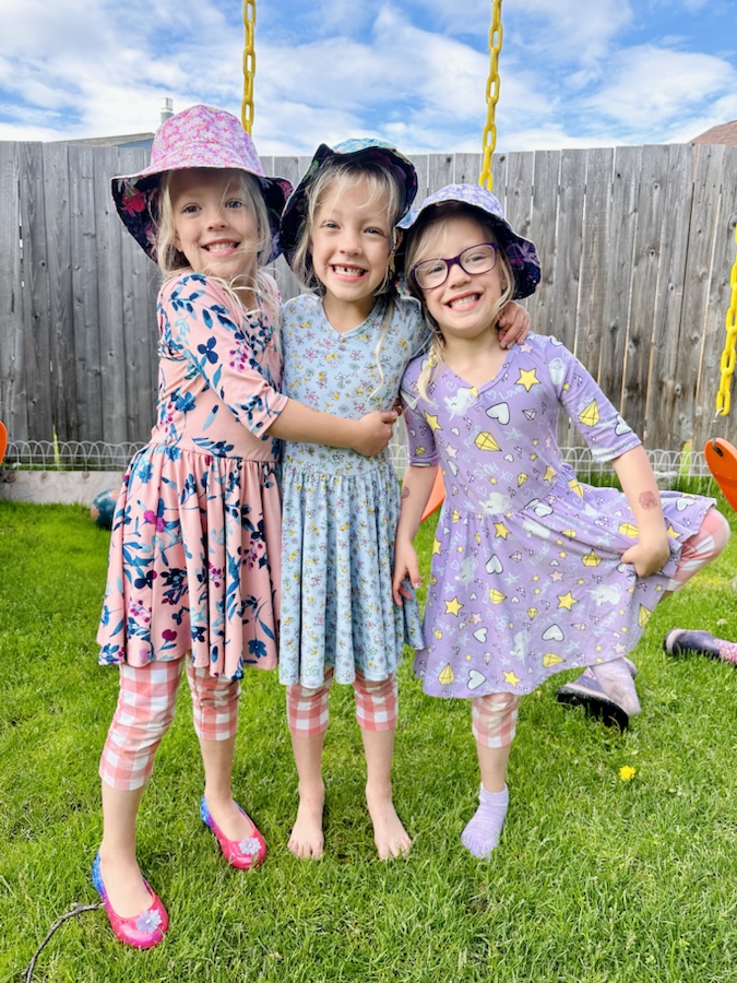 The girls are currently all on a dress up kick, and while you’d assume Harper would be leading that charge with her love of all things pink, black and princessery, Emerie is currently the one obsessed with her Snow White two piece outfit from Uncle William at Christmas. The past few weeks she’s worn it to school over her clothes a number of times and every night the battle of convincing her it isn’t pajamas occurs. Harper is more into the tutus, dress up heels and crown headbands while Reagan occasionally accepts an article of clothing, especially when delivered by her sisters; overall her favorite “dress-up” article of clothing is the plain green hat from June and January, which she constantly wears and carts around. The other evening Reagan was wearing a pink princess cloak and Harper called her out, claiming she can’t wear pink, you’re Reagan and you wear blue! It’s funny to say, but we definitely hit the nail on the head on who correlates to what color, since we didn’t make the call based on personality at birth. Harper loves girly and pink things, Emerie likes purple (also blue but not the point) and Reagan appears to be the tomboy and prefers teal and blue when given the option.