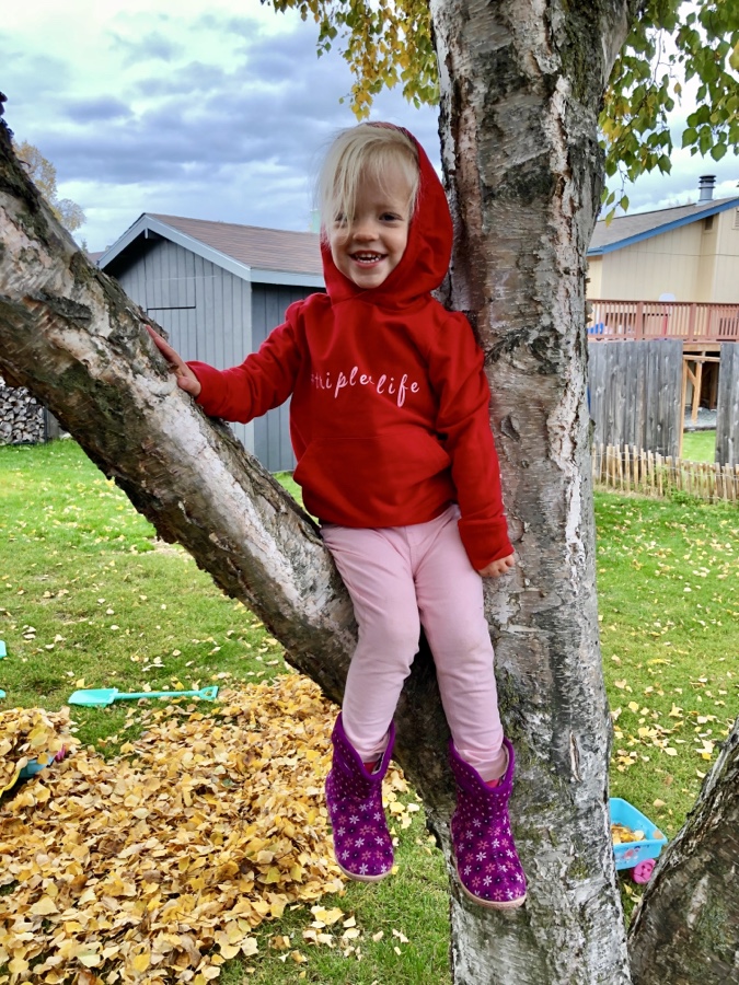The daycare teachers tell me Emerie is thriving in school. We were concerned about the separation of classrooms at first- instead of being detrimental or upsetting, her independence is thriving. She is very attached to her teacher, Miss Maddie, and I’m sure that is one of the reasons for excelling. I’m told she is the class helper when it comes to cleaning up, which is an accurate depiction at home as well. The monkey bars are one of her favorite activities out on the playground. Breakfast and recess time have all the toddlers together, which certainly helps the mood when she misses her sisters; it’s great to see her doing so well.
