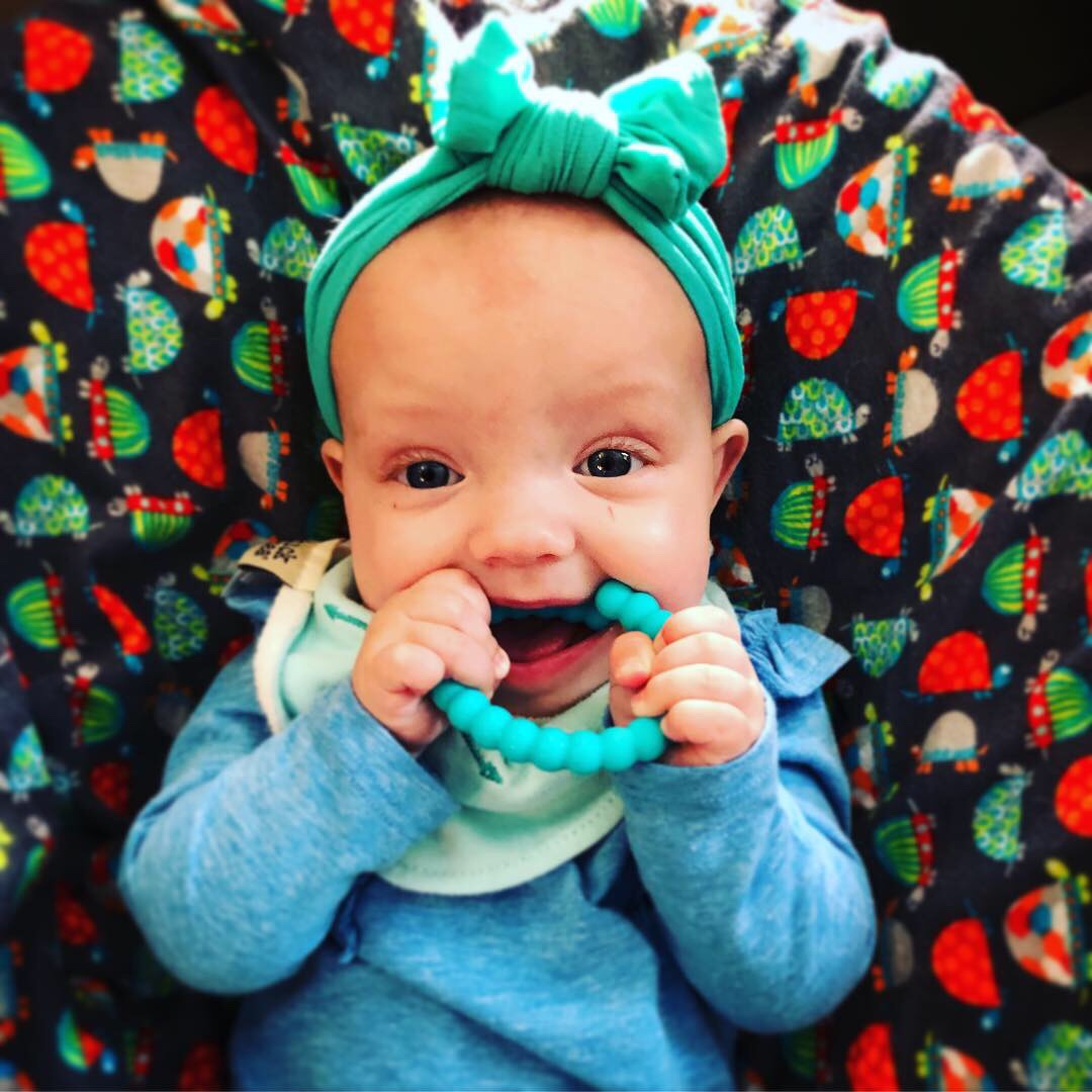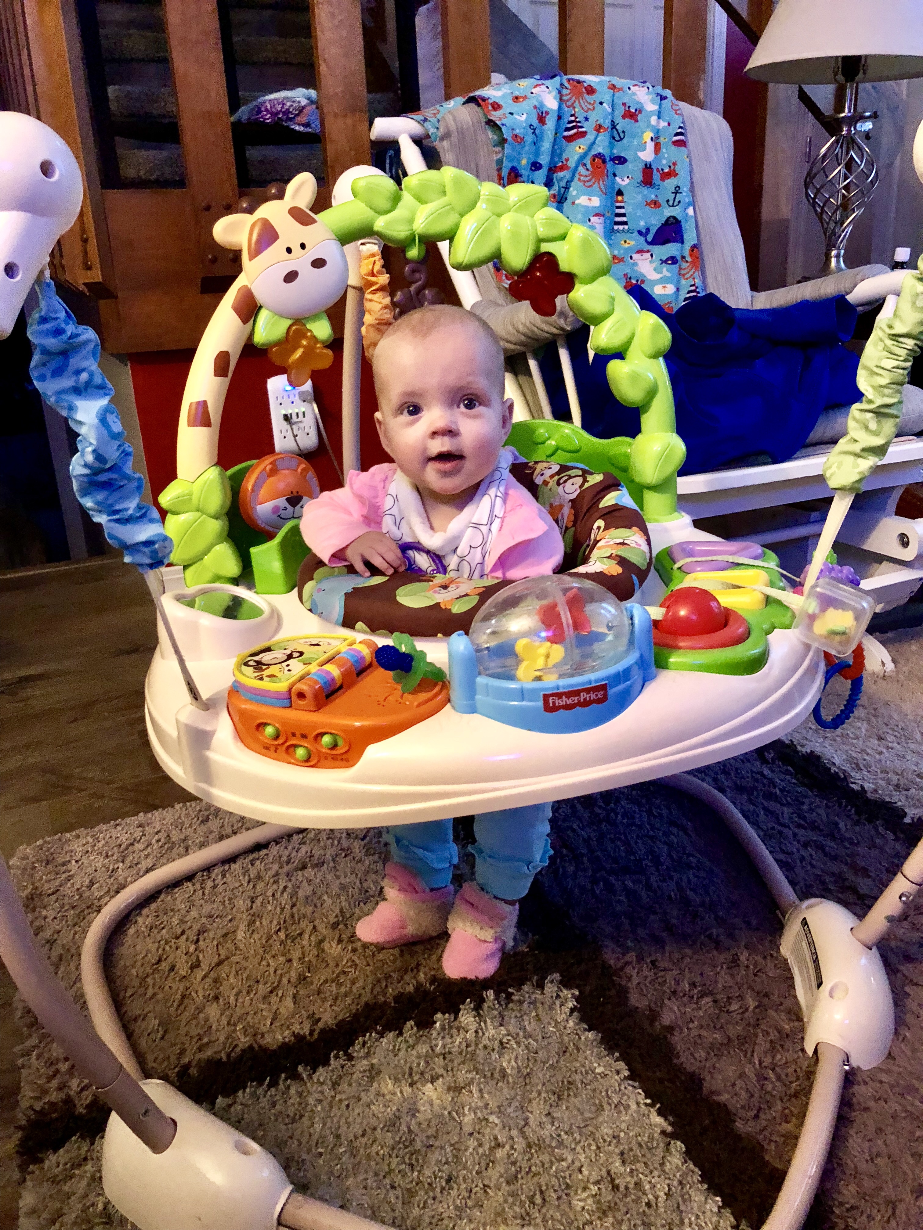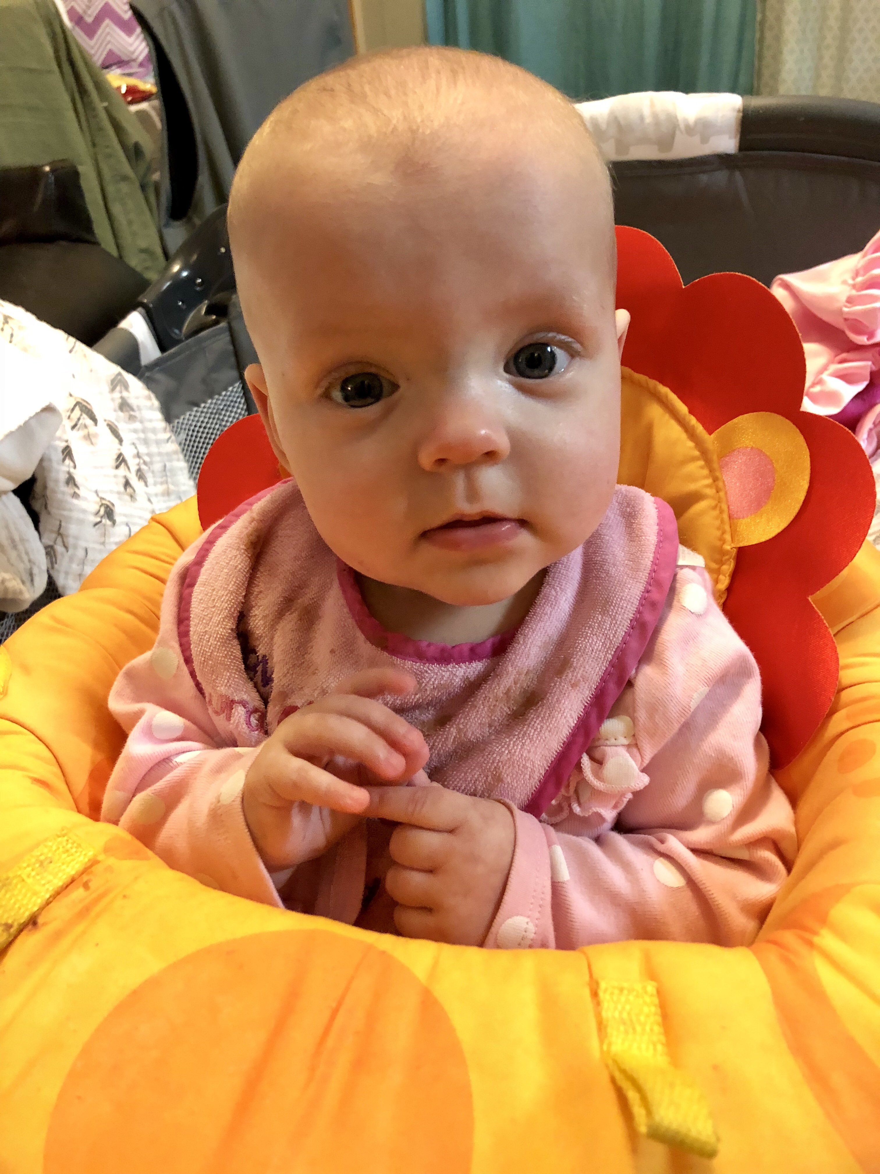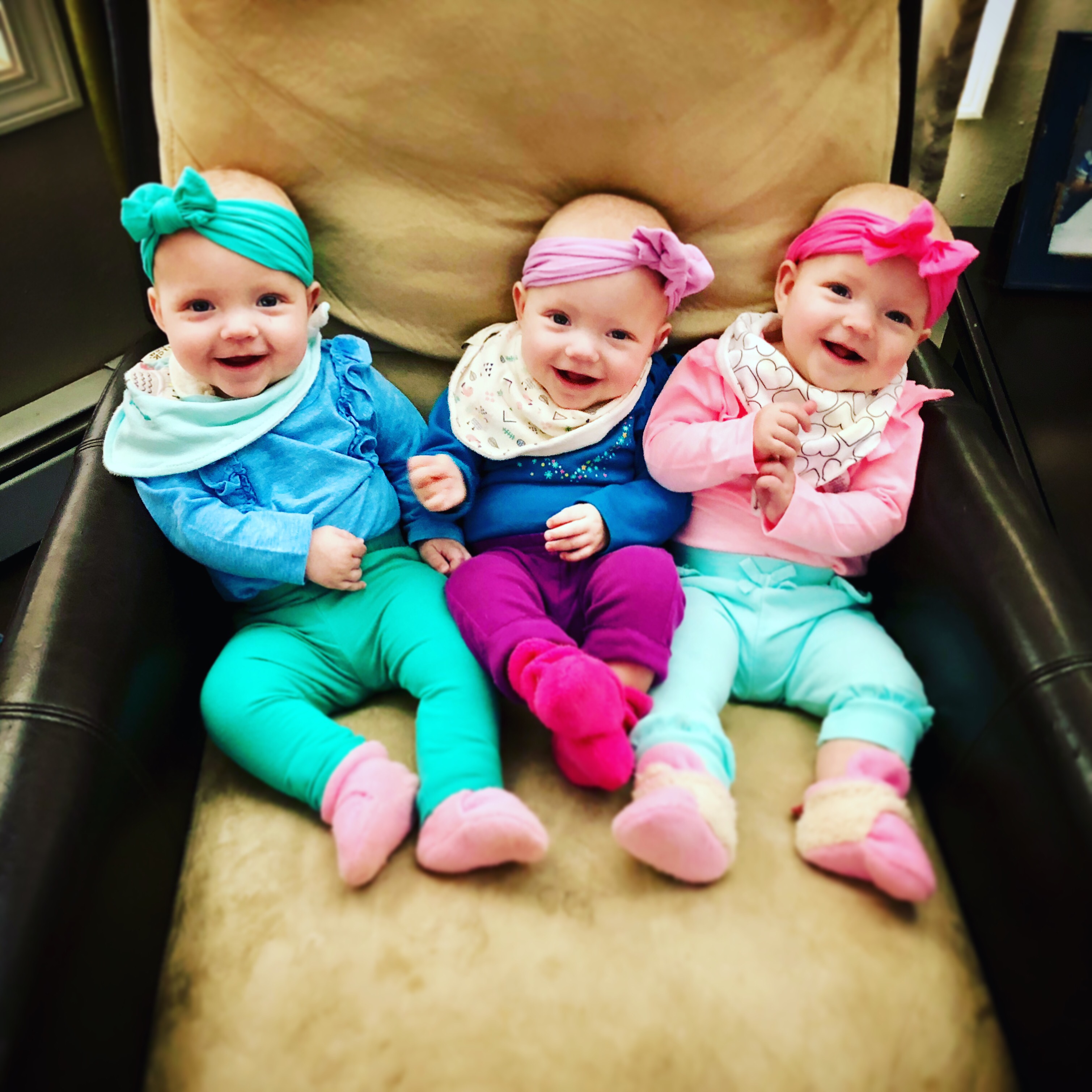 Each day we practice sitting up, eating baby food and hand eye coordination while playing with toys. We are just around the corner from them independently sitting up and playing, as they are getting pretty good at it (with mild help).