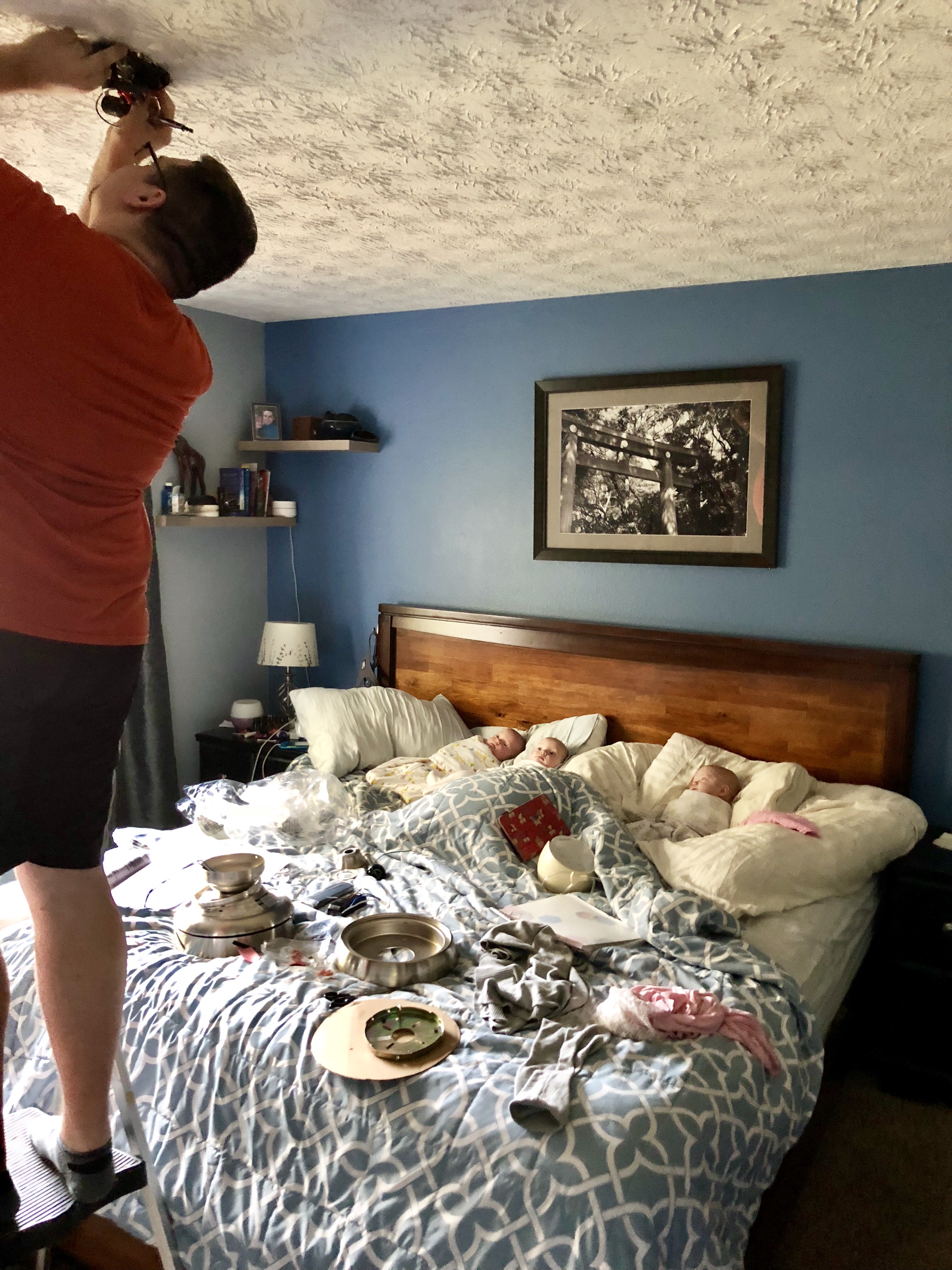 Sleep sacks are still needed at night. Reagan still startles the worst of the three but is slowly improving. The next step is to try these adorable sleep suits that look more like the Big Hero 6 marshmallow guy than a sleeping bag.