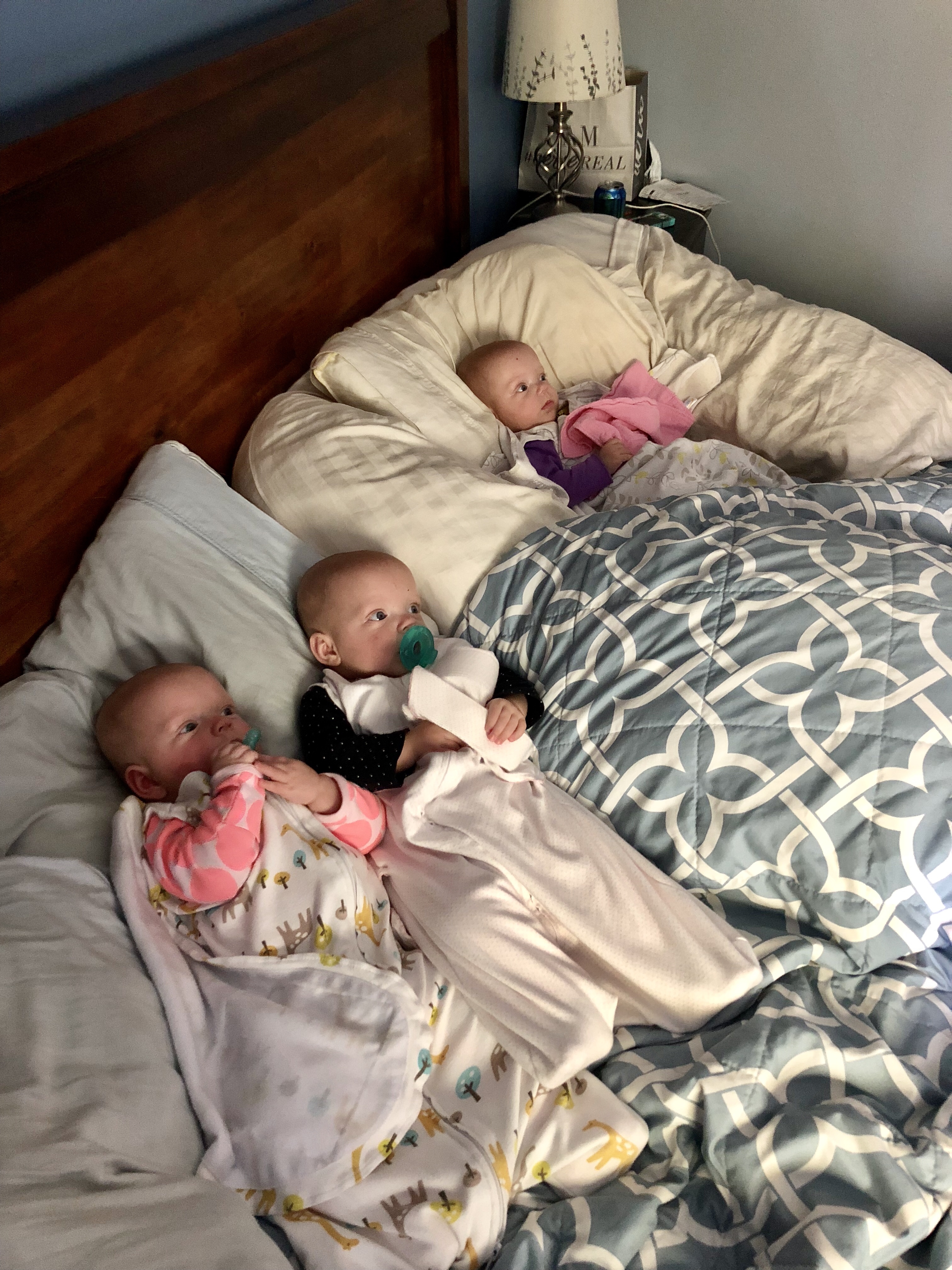 As I start writing this, Reagan is sweetly looking at me from her swing while her sisters obediently nap up in their cribs.