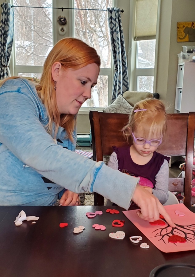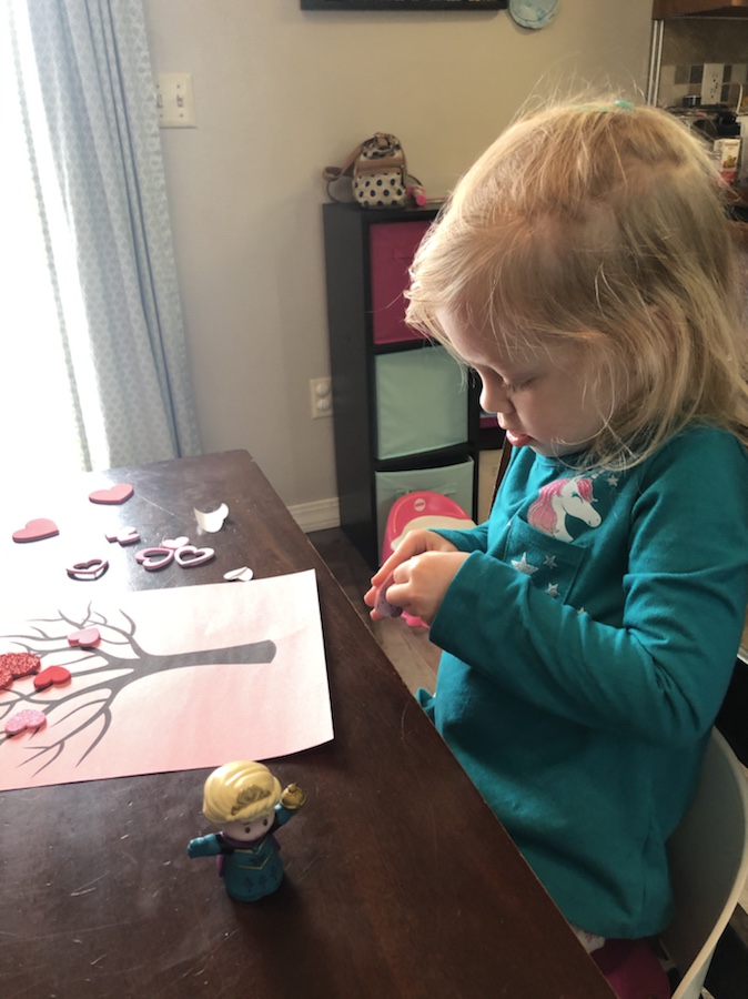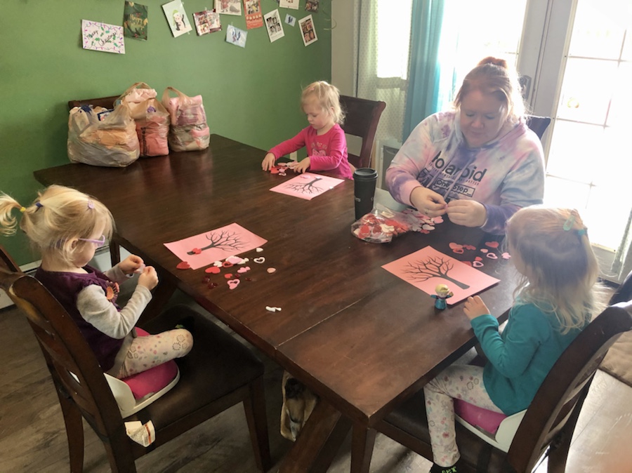 And lastly, since this blog is getting a bit long, I have to mention all the Valentine’s day fun. This time last year we were down in Juneau working and harassing family, and I’m really glad this year we stayed for the girls to participate in their school activities. One day after school everyone wrote out their own Valentine’s Day cards; something I did quickly the night before last year! Some grumbling occurred until we got in the groove; overall they did great writing all classmates names and their own. I overbought options, since last year valentines sold out well before the holiday and couldn’t be found, with Reagan selecting Trolls (Band Together), Emerie choosing Frozen over the Bluey option, and Harper claiming Peppa Pig. I always enjoy watching them to a school type activity at home, such as writing classmates names down, and seeing how they react. Emerie struggled a bit fitting the letters into the small cards, writing bottom to top to finish names, but was able to get over that frustration and actually finished first! Harper and Reagan continued fighting over the pen used to cross completely names off the list; Harper also demanded to only use a yellow marker for all the writing, and Reagan took her time writing out the names. Somehow we made it through and were done by the time Craig came home from work!
