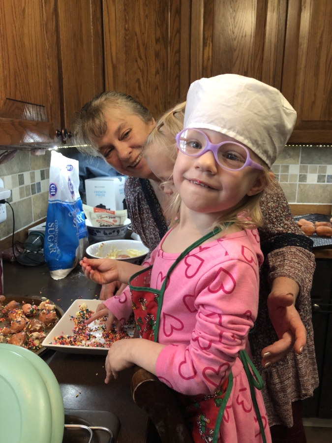 We are now in the age of toy cleanup that all three now understand cleaning up does not mean shoving everything under the bed, or in one toy bin, but to try to put things away correctly. I should probably credit Grandma Sue for this transition, and it’s noticeable when we ask them to put things away where they go. I will often randomly fine one cleaning up a room (never all three at once), looking for a reward treat of course, and putting doll accessories or barbies or stuffed animals in the correct bins. Score!! Now, if we can only convince these kids to change their clothes and put anything removed in a laundry bin or by the washer, instead of everywhere. Baby steps!