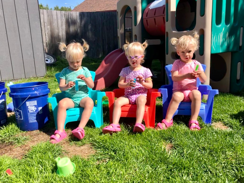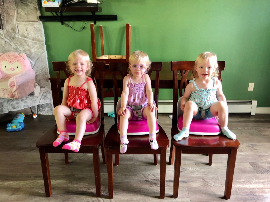 The children are starting to become conversationalists on a number of new topics, emotions and opinions. The leader of the communication pack (at this moment) is Harper, who is growing increasingly good at stringing together full sentences and phrases and throwing adjectives in with it! She commonly states things like I want to go potty, Mom, I want to wash my hands, or my current favorite regarding her sisters, saying she touched me Mom. Mom she touched me! Mooooommmm. She will repeat that sentence over and over until you acknowledge her complaint. Emerie is part of the politeness police, ensuring she says please and (more often) thank you, or responding with no thank you to anything she doesn’t want. She likes to randomly whisper to us that someone farted, usually followed up with a farted like daddy (which is hilarious!!). What beautiful memories. Her constant response of yeah is now replaced with an affirming yes when you ask her something. She is also the one that reminds her sisters to bring the forgotten teddyor stuffed animal downstairs, and will adamantly DEMAND they take it or she will insist on bringing it herself. While Reagan may not be as much of a conversationalist as either of her sisters, she is definitely a singer and randomly breaks out into song throughout the day. This rule does not apply upon request; if you ask her to sing she might do a bar but then goes quiet; it has to be on her terms! She is also exceptional at telling us when she needs to potty and has those bodily functions down! The other day she also asked if she could do something for two more minutes– it cracks me up she is now negotiating with the adults in her life, which I know is only going to happen more and more as time goes on. She will also tell you who her boyfriend is if you ask, but I’ll leave that new for her to tell you.