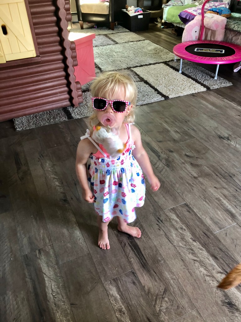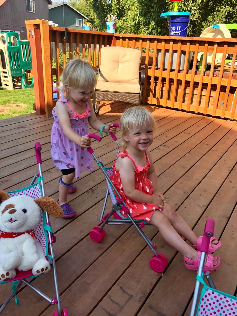 Other preferred companions consist of the pig and chicken from Moana, a few soft, black teddy bears from Cousin Gabe, a stuffed sloth, and new Cabbage Patch dolls, whose names are CiCi, Stella, and Sadi according to their labels. It’s adorable to hear the girls yell where is Cici!? hi Cici. Sadi in time-out. Stella, no. They are working on potty training the dolls. I will often turn around to all three instructing their “kiddos” on the potty chairs in the living room, which sometimes results in cleaning them in the washer…