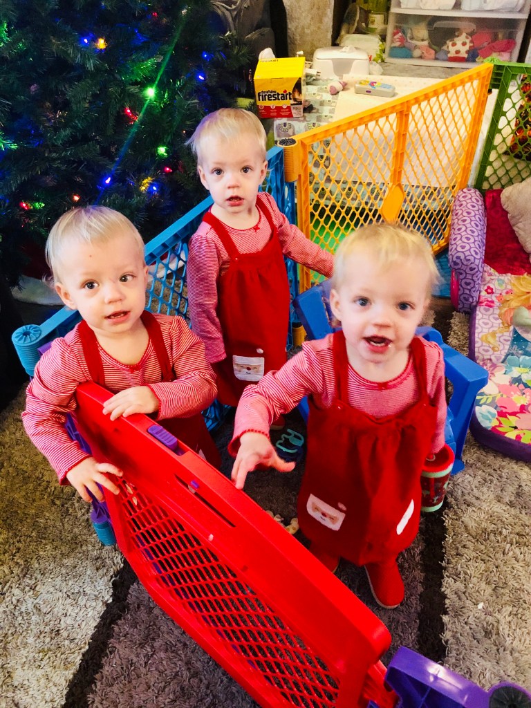 Our little trio started crawling at about 11.5 months, and by 13 months were pros at walking and #onthemove. At 15 months everyone was climbing on everything and excitedly exploring the world around them with no fear! At 18 months, the conversations are certainly starting, secret giggles and gibberish between the girls as well as the random new words everyone continues to learn each day. At 21 months, they are running around, getting into everything, and testing out boundaries each and every moment! There is never a still moment and everyone is constantly into something or running around in three different directions.